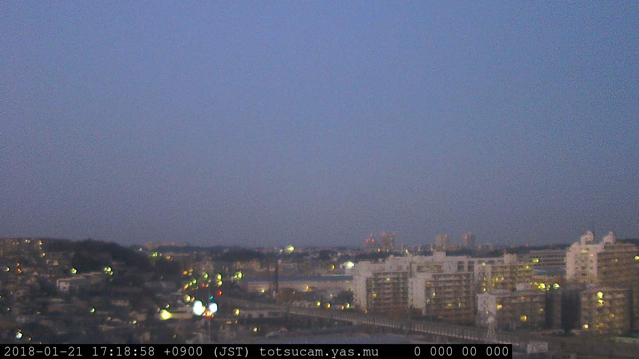 適度に曇った日の雲の動き (例: 2005-10-24) がとても楽しめます。 正面を横切っている高架は横須賀線下りです。 その下に横須賀線上り、東海道線、同貨物線が走っていますが、 高架に隠れていてよく見えません。 夜間は特に中央左寄りの車の動きがよく見えます。