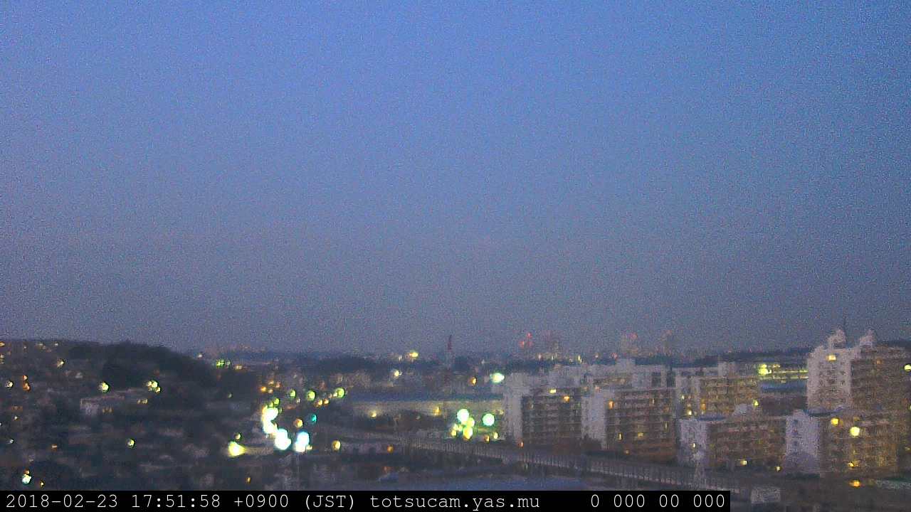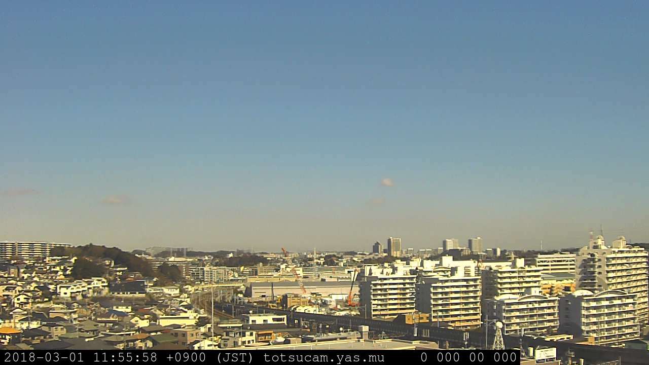 横浜市戸塚駅周辺から 東戸塚方面(北北東)を望む展望カメラの映像です。 左は現在の映像です。 下に並んでいるのは、 7日間に亘る日の出どき、昼間、夕暮れどきの写真(サムネイル)です。 それぞれ、日の出15分前、南中時、日没20分後の写真となっています。 各写真の下にはmpeg形式の動画へのリンクがあります。 それぞれ、日の出、南中、日没の前後1時間の画像です。 右欄にはその日24時間の動画へのリンクがあります。 この7日間以外は日付が一覧表示されています。 日付部分をクリックすると、 その日付から7日分が展開されて表示されます。