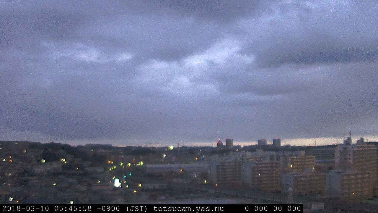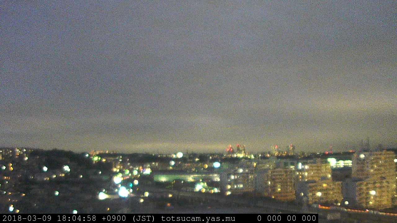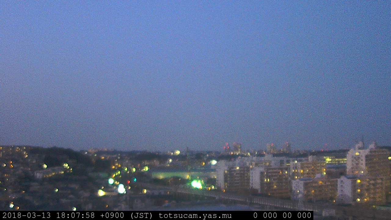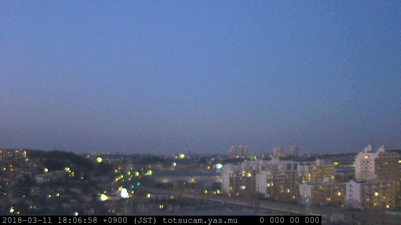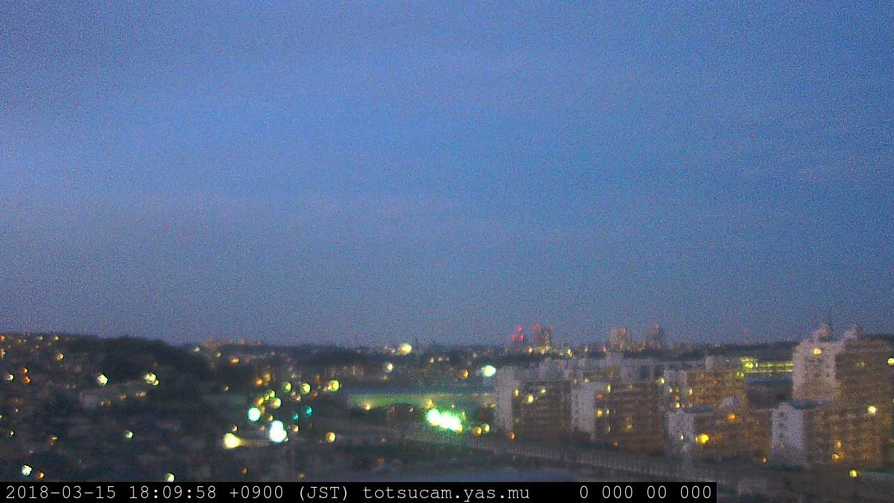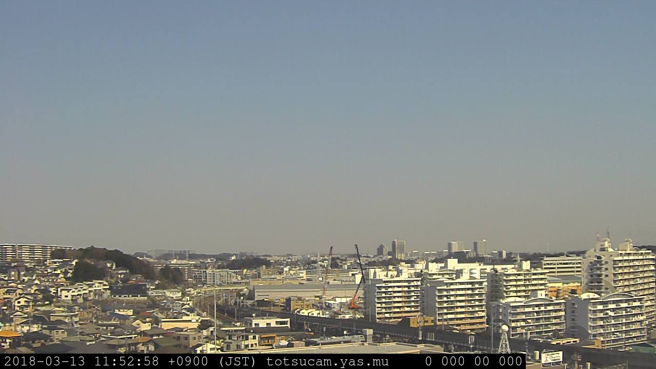 横浜市戸塚駅周辺から 東戸塚方面(北北東)を望む展望カメラの映像です。 左は現在の映像です。 下に並んでいるのは、 7日間に亘る日の出どき、昼間、夕暮れどきの写真(サムネイル)です。 それぞれ、日の出15分前、南中時、日没20分後の写真となっています。 各写真の下にはmpeg形式の動画へのリンクがあります。 それぞれ、日の出、南中、日没の前後1時間の画像です。 右欄にはその日24時間の動画へのリンクがあります。 この7日間以外は日付が一覧表示されています。 日付部分をクリックすると、 その日付から7日分が展開されて表示されます。