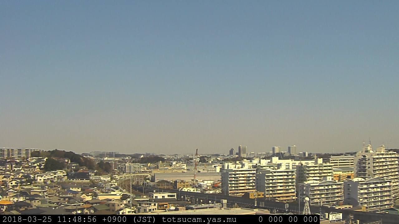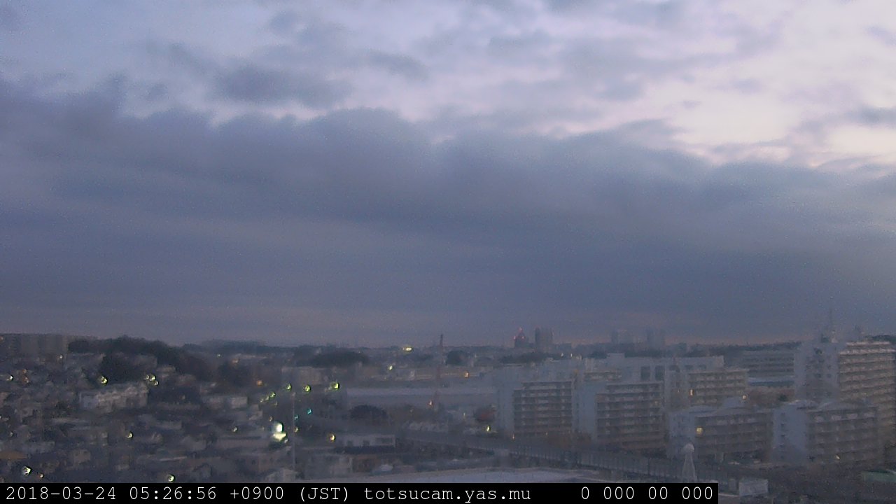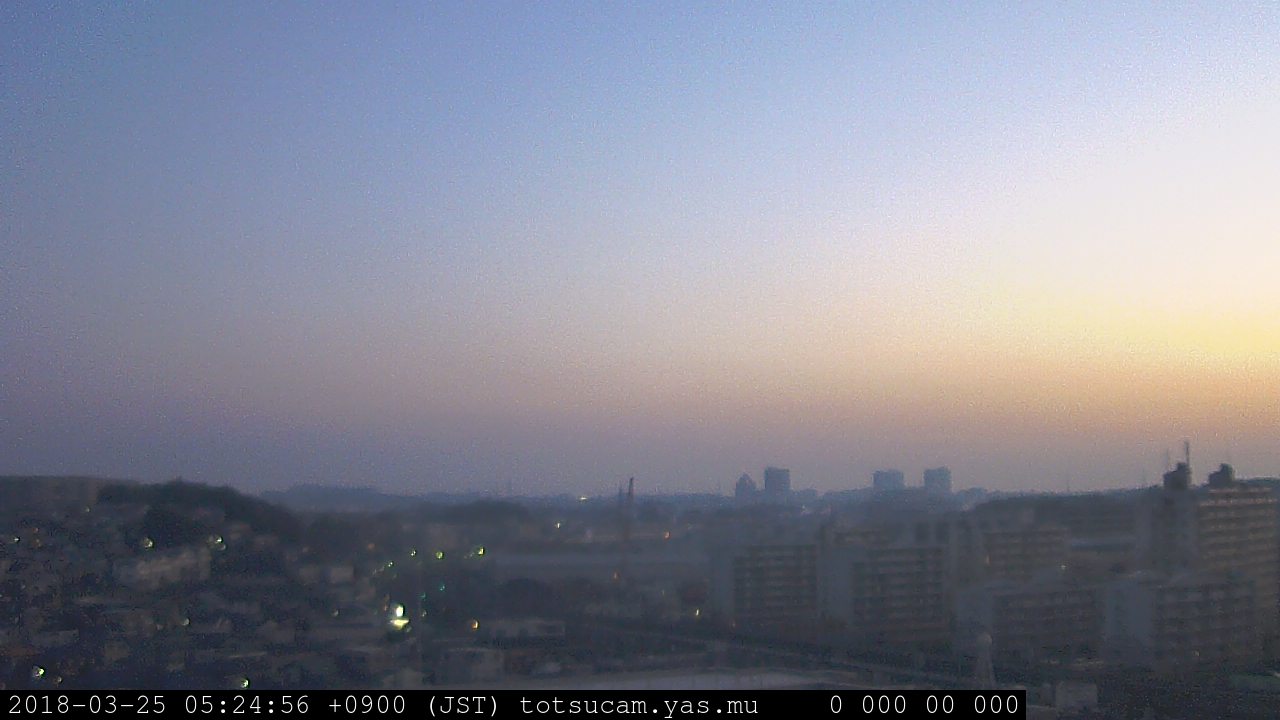 横浜市戸塚駅周辺から 東戸塚方面(北北東)を望む展望カメラの映像です。 左は現在の映像です。 下に並んでいるのは、 7日間に亘る日の出どき、昼間、夕暮れどきの写真(サムネイル)です。 それぞれ、日の出15分前、南中時、日没20分後の写真となっています。 各写真の下にはmpeg形式の動画へのリンクがあります。 それぞれ、日の出、南中、日没の前後1時間の画像です。 右欄にはその日24時間の動画へのリンクがあります。 この7日間以外は日付が一覧表示されています。 日付部分をクリックすると、 その日付から7日分が展開されて表示されます。