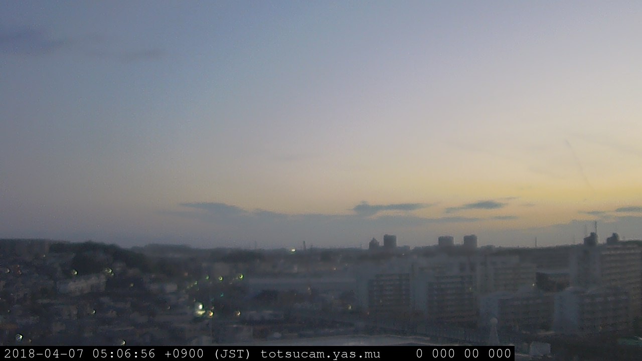 横浜市戸塚駅周辺から 東戸塚方面(北北東)を望む展望カメラの映像です。 左は現在の映像です。 下に並んでいるのは、 7日間に亘る日の出どき、昼間、夕暮れどきの写真(サムネイル)です。 それぞれ、日の出15分前、南中時、日没20分後の写真となっています。 各写真の下にはmpeg形式の動画へのリンクがあります。 それぞれ、日の出、南中、日没の前後1時間の画像です。 右欄にはその日24時間の動画へのリンクがあります。 この7日間以外は日付が一覧表示されています。 日付部分をクリックすると、 その日付から7日分が展開されて表示されます。