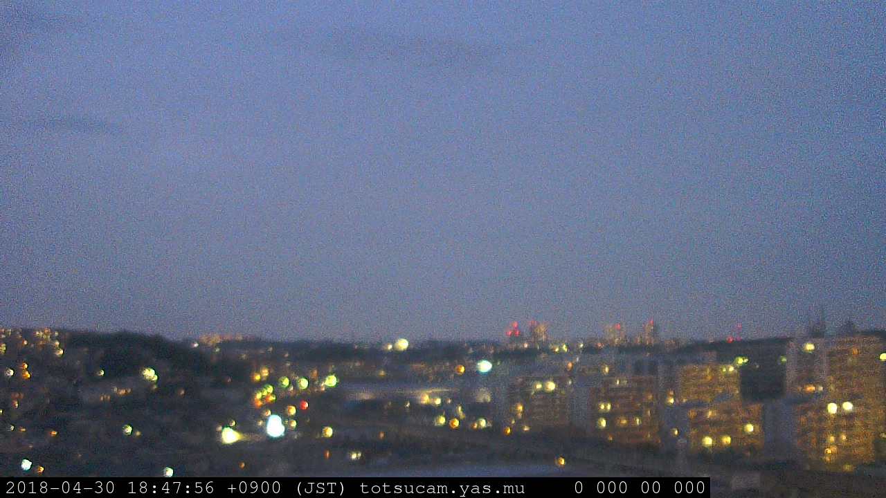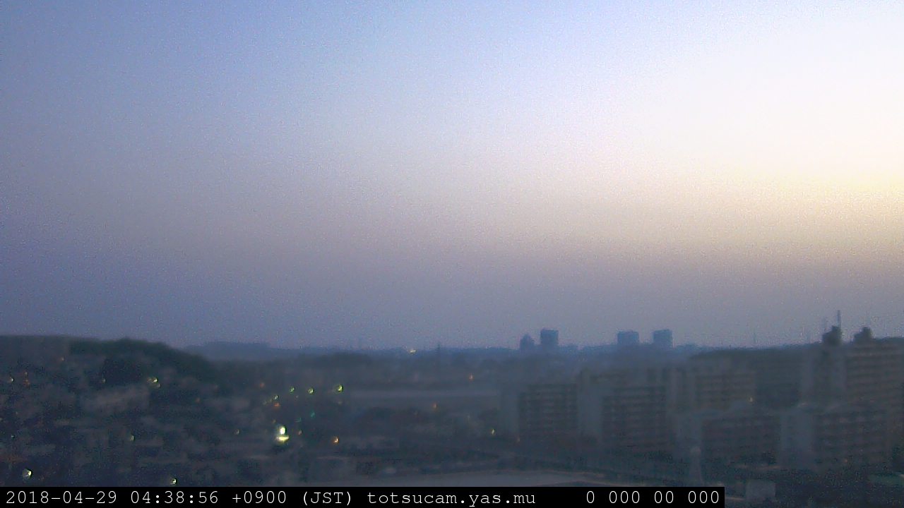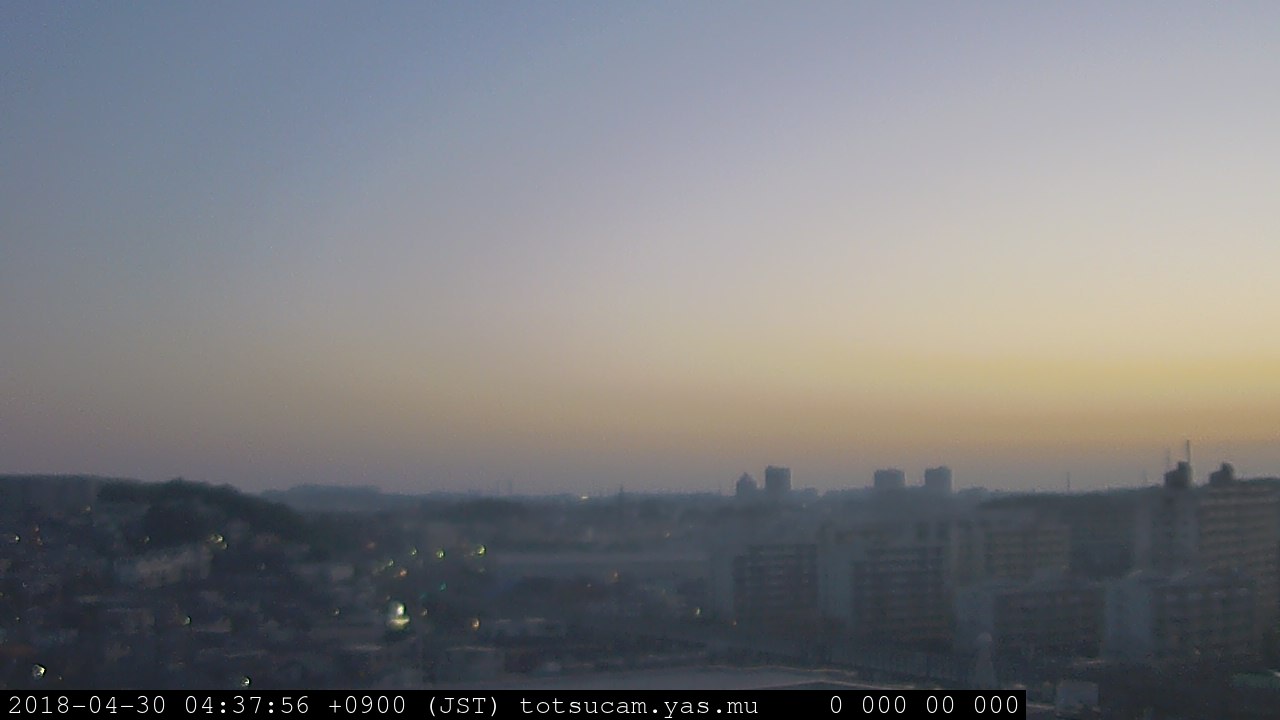 横浜市戸塚駅周辺から 東戸塚方面(北北東)を望む展望カメラの映像です。 左は現在の映像です。 下に並んでいるのは、 7日間に亘る日の出どき、昼間、夕暮れどきの写真(サムネイル)です。 それぞれ、日の出15分前、南中時、日没20分後の写真となっています。 各写真の下にはmpeg形式の動画へのリンクがあります。 それぞれ、日の出、南中、日没の前後1時間の画像です。 右欄にはその日24時間の動画へのリンクがあります。 この7日間以外は日付が一覧表示されています。 日付部分をクリックすると、 その日付から7日分が展開されて表示されます。