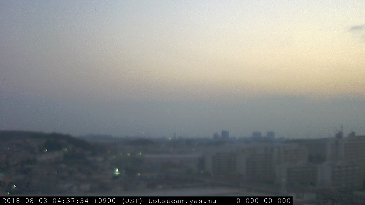 横浜市戸塚駅周辺から 東戸塚方面(北北東)を望む展望カメラの映像です。 左は現在の映像です。 下に並んでいるのは、 7日間に亘る日の出どき、昼間、夕暮れどきの写真(サムネイル)です。 それぞれ、日の出15分前、南中時、日没20分後の写真となっています。 各写真の下にはmpeg形式の動画へのリンクがあります。 それぞれ、日の出、南中、日没の前後1時間の画像です。 右欄にはその日24時間の動画へのリンクがあります。 この7日間以外は日付が一覧表示されています。 日付部分をクリックすると、 その日付から7日分が展開されて表示されます。