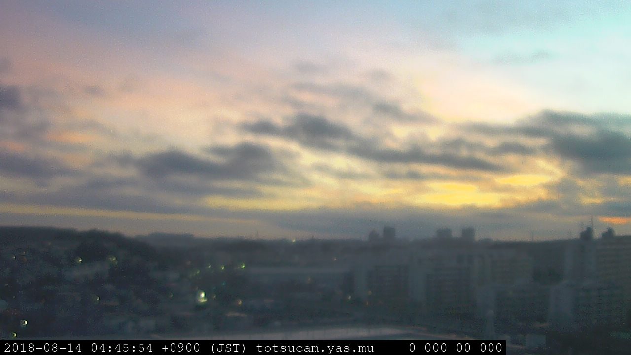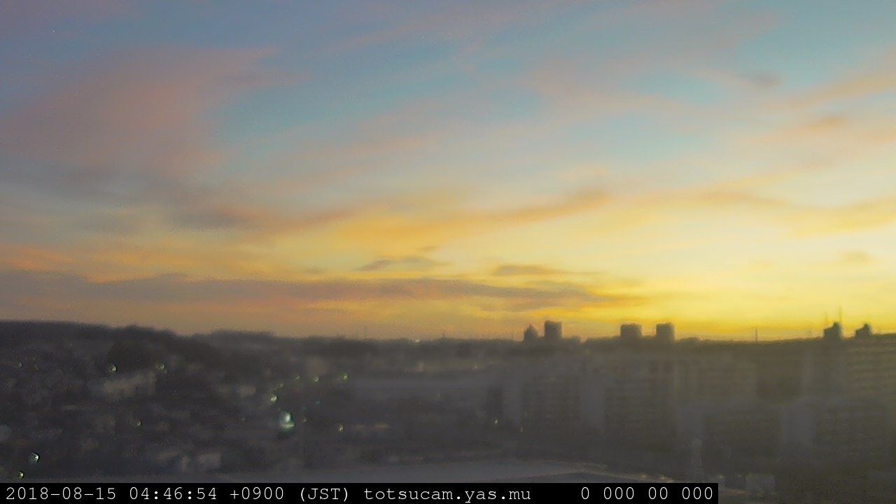 横浜市戸塚駅周辺から 東戸塚方面(北北東)を望む展望カメラの映像です。 左は現在の映像です。 下に並んでいるのは、 7日間に亘る日の出どき、昼間、夕暮れどきの写真(サムネイル)です。 それぞれ、日の出15分前、南中時、日没20分後の写真となっています。 各写真の下にはmpeg形式の動画へのリンクがあります。 それぞれ、日の出、南中、日没の前後1時間の画像です。 右欄にはその日24時間の動画へのリンクがあります。 この7日間以外は日付が一覧表示されています。 日付部分をクリックすると、 その日付から7日分が展開されて表示されます。