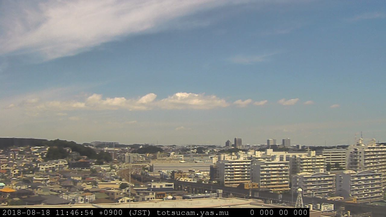 適度に曇った日の雲の動き (例: 2005-10-24) がとても楽しめます。 正面を横切っている高架は横須賀線下りです。 その下に横須賀線上り、東海道線、同貨物線が走っていますが、 高架に隠れていてよく見えません。 夜間は特に中央左寄りの車の動きがよく見えます。