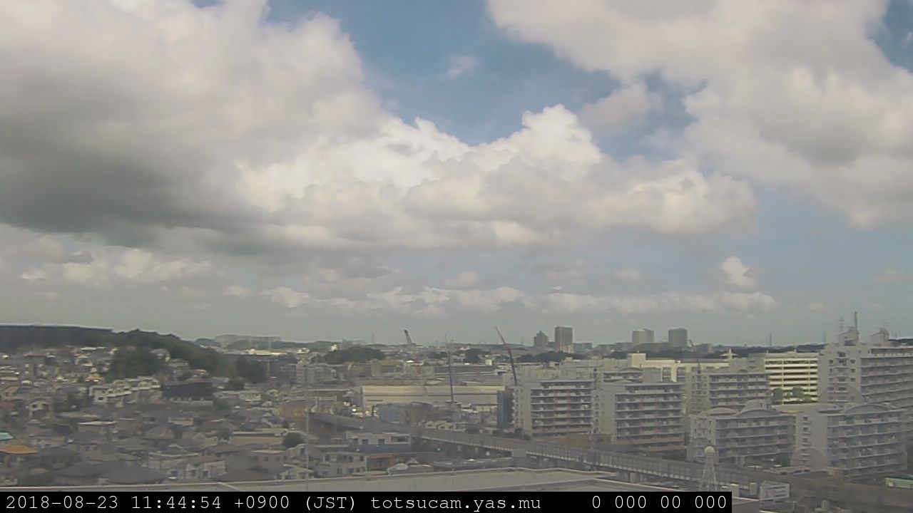 横浜市戸塚駅周辺から 東戸塚方面(北北東)を望む展望カメラの映像です。 左は現在の映像です。 下に並んでいるのは、 7日間に亘る日の出どき、昼間、夕暮れどきの写真(サムネイル)です。 それぞれ、日の出15分前、南中時、日没20分後の写真となっています。 各写真の下にはmpeg形式の動画へのリンクがあります。 それぞれ、日の出、南中、日没の前後1時間の画像です。 右欄にはその日24時間の動画へのリンクがあります。 この7日間以外は日付が一覧表示されています。 日付部分をクリックすると、 その日付から7日分が展開されて表示されます。