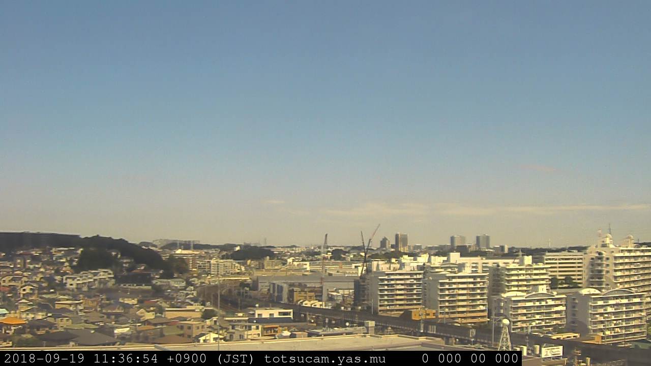 横浜市戸塚駅周辺から 東戸塚方面(北北東)を望む展望カメラの映像です。 左は現在の映像です。 下に並んでいるのは、 7日間に亘る日の出どき、昼間、夕暮れどきの写真(サムネイル)です。 それぞれ、日の出15分前、南中時、日没20分後の写真となっています。 各写真の下にはmpeg形式の動画へのリンクがあります。 それぞれ、日の出、南中、日没の前後1時間の画像です。 右欄にはその日24時間の動画へのリンクがあります。 この7日間以外は日付が一覧表示されています。 日付部分をクリックすると、 その日付から7日分が展開されて表示されます。