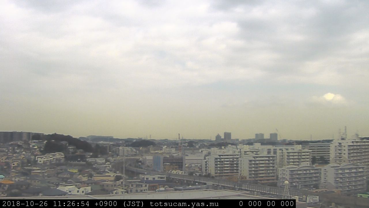 横浜市戸塚駅周辺から 東戸塚方面(北北東)を望む展望カメラの映像です。 左は現在の映像です。 下に並んでいるのは、 7日間に亘る日の出どき、昼間、夕暮れどきの写真(サムネイル)です。 それぞれ、日の出15分前、南中時、日没20分後の写真となっています。 各写真の下にはmpeg形式の動画へのリンクがあります。 それぞれ、日の出、南中、日没の前後1時間の画像です。 右欄にはその日24時間の動画へのリンクがあります。 この7日間以外は日付が一覧表示されています。 日付部分をクリックすると、 その日付から7日分が展開されて表示されます。