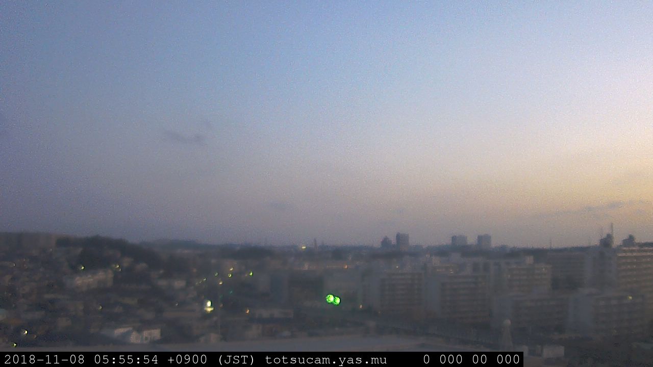 横浜市戸塚駅周辺から 東戸塚方面(北北東)を望む展望カメラの映像です。 左は現在の映像です。 下に並んでいるのは、 7日間に亘る日の出どき、昼間、夕暮れどきの写真(サムネイル)です。 それぞれ、日の出15分前、南中時、日没20分後の写真となっています。 各写真の下にはmpeg形式の動画へのリンクがあります。 それぞれ、日の出、南中、日没の前後1時間の画像です。 右欄にはその日24時間の動画へのリンクがあります。 この7日間以外は日付が一覧表示されています。 日付部分をクリックすると、 その日付から7日分が展開されて表示されます。