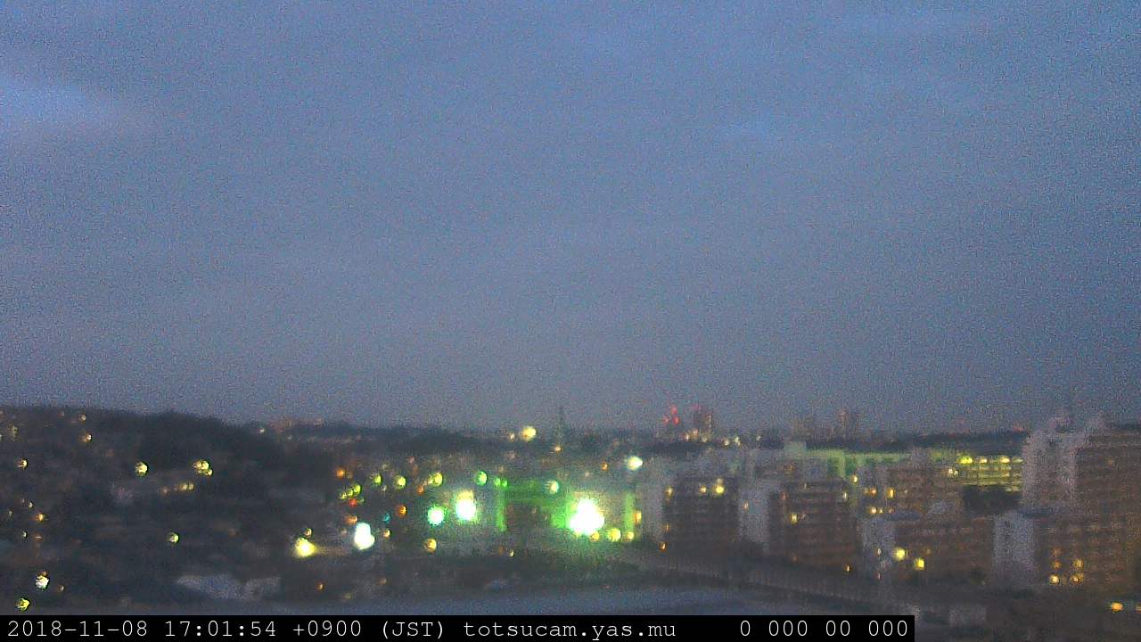 適度に曇った日の雲の動き (例: 2005-10-24) がとても楽しめます。 正面を横切っている高架は横須賀線下りです。 その下に横須賀線上り、東海道線、同貨物線が走っていますが、 高架に隠れていてよく見えません。 夜間は特に中央左寄りの車の動きがよく見えます。