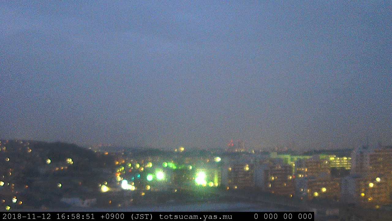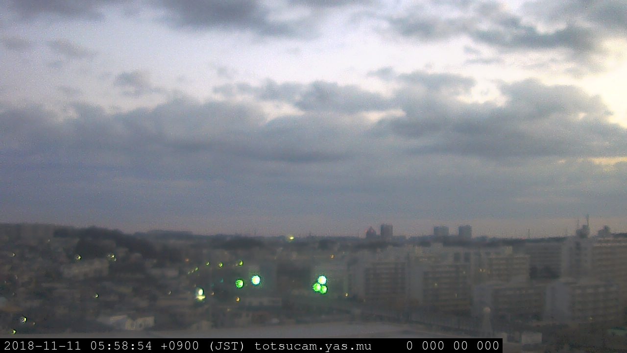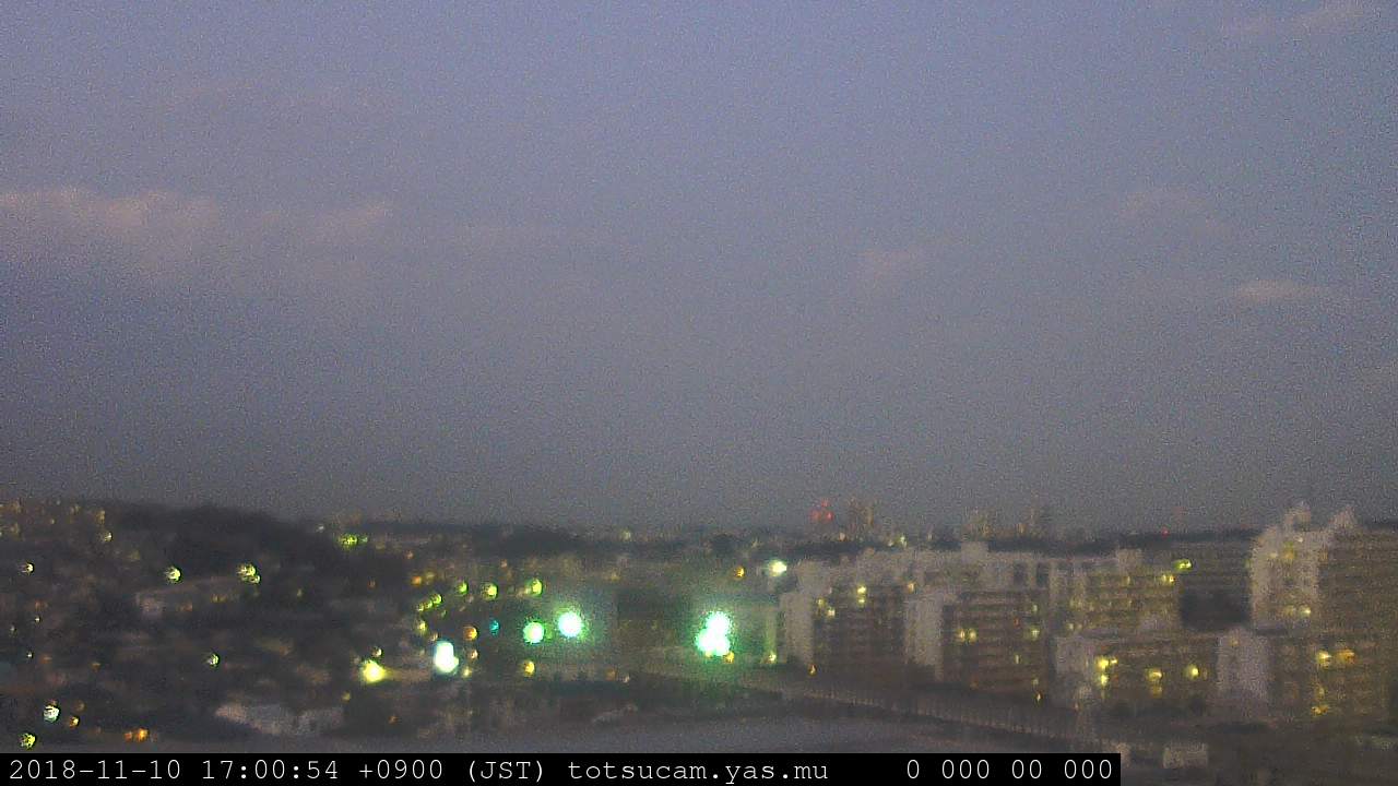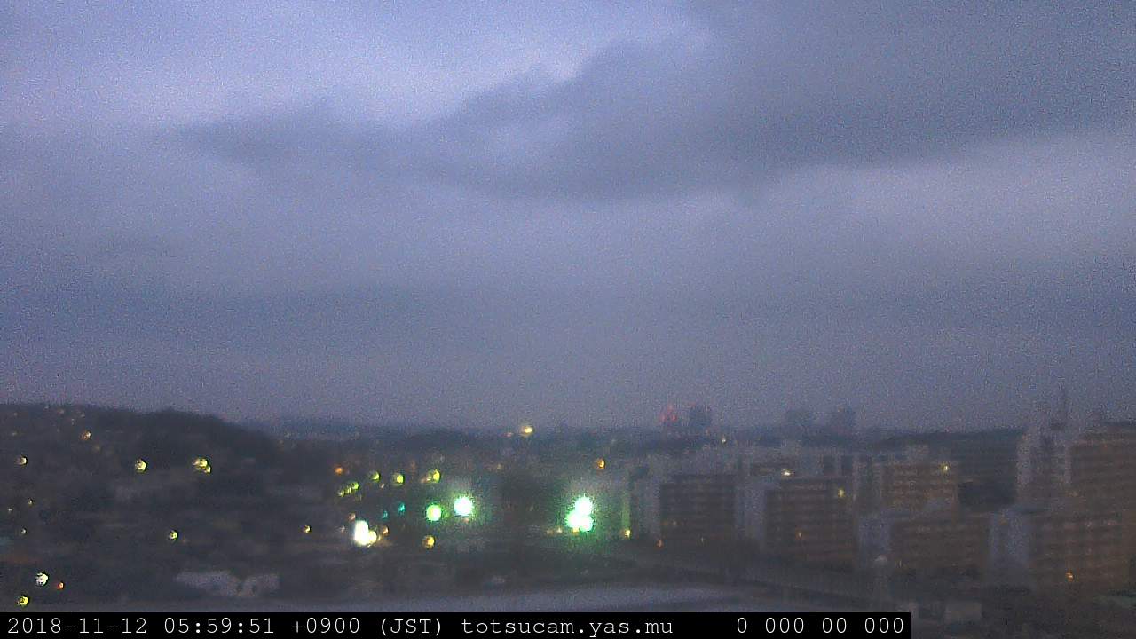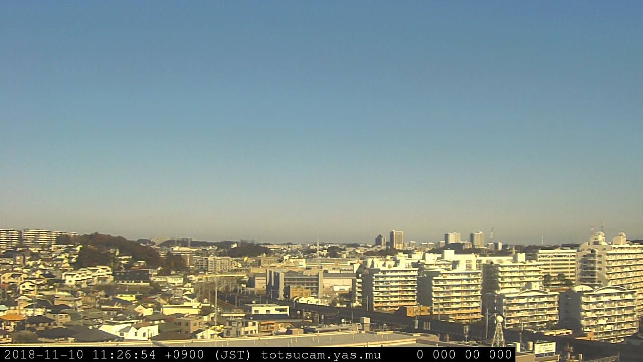 横浜市戸塚駅周辺から 東戸塚方面(北北東)を望む展望カメラの映像です。 左は現在の映像です。 下に並んでいるのは、 7日間に亘る日の出どき、昼間、夕暮れどきの写真(サムネイル)です。 それぞれ、日の出15分前、南中時、日没20分後の写真となっています。 各写真の下にはmpeg形式の動画へのリンクがあります。 それぞれ、日の出、南中、日没の前後1時間の画像です。 右欄にはその日24時間の動画へのリンクがあります。 この7日間以外は日付が一覧表示されています。 日付部分をクリックすると、 その日付から7日分が展開されて表示されます。