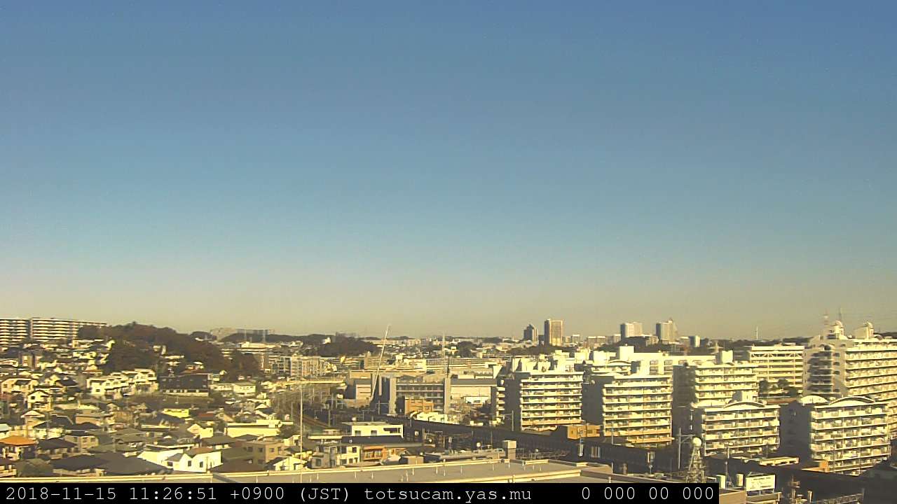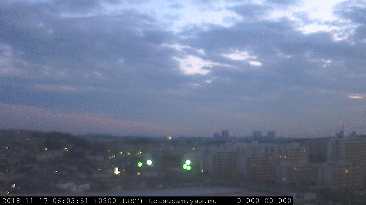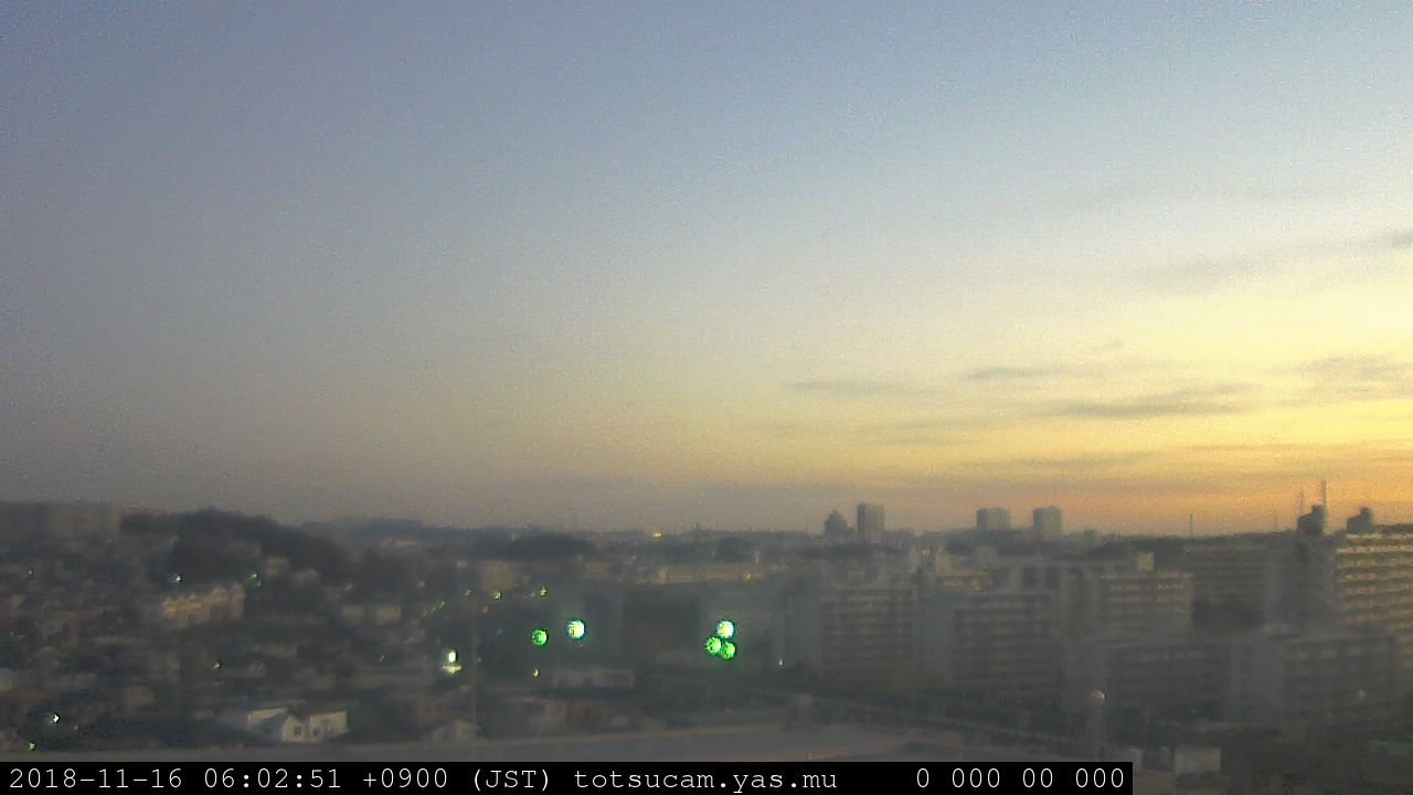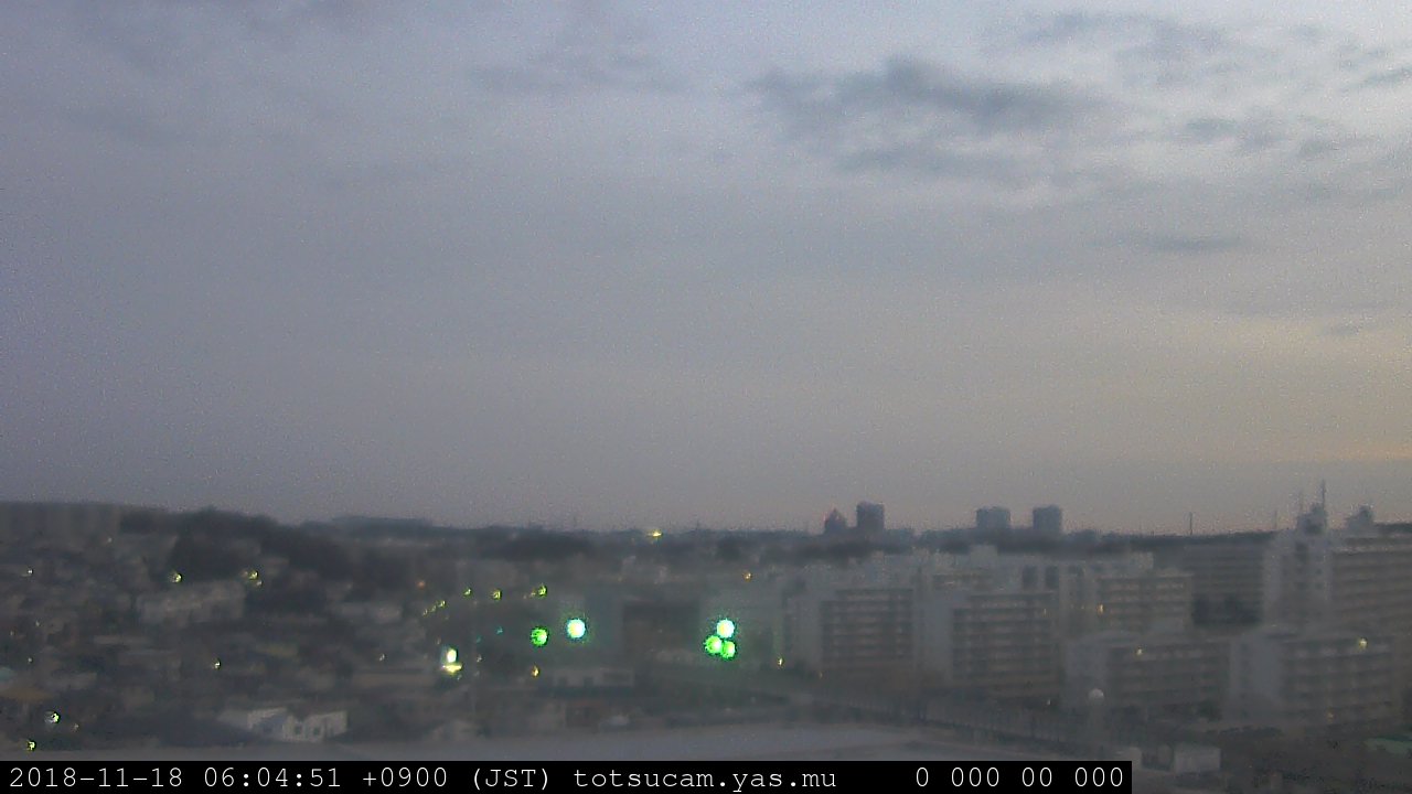 横浜市戸塚駅周辺から 東戸塚方面(北北東)を望む展望カメラの映像です。 左は現在の映像です。 下に並んでいるのは、 7日間に亘る日の出どき、昼間、夕暮れどきの写真(サムネイル)です。 それぞれ、日の出15分前、南中時、日没20分後の写真となっています。 各写真の下にはmpeg形式の動画へのリンクがあります。 それぞれ、日の出、南中、日没の前後1時間の画像です。 右欄にはその日24時間の動画へのリンクがあります。 この7日間以外は日付が一覧表示されています。 日付部分をクリックすると、 その日付から7日分が展開されて表示されます。