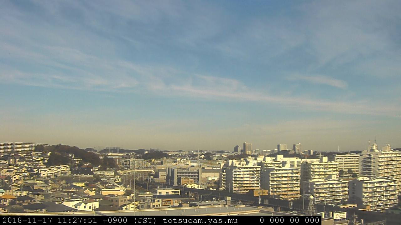 適度に曇った日の雲の動き (例: 2005-10-24) がとても楽しめます。 正面を横切っている高架は横須賀線下りです。 その下に横須賀線上り、東海道線、同貨物線が走っていますが、 高架に隠れていてよく見えません。 夜間は特に中央左寄りの車の動きがよく見えます。