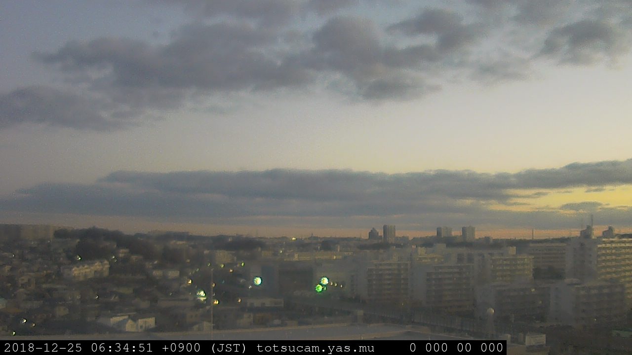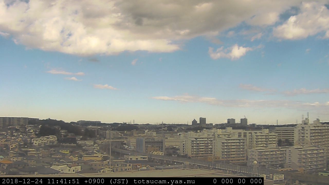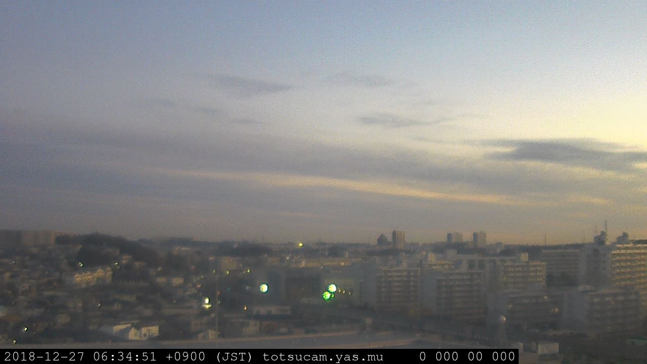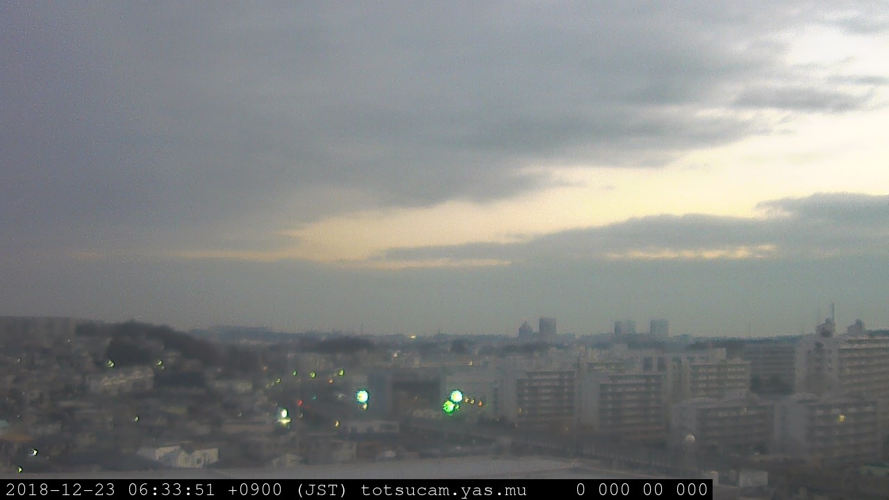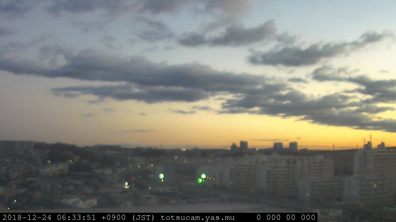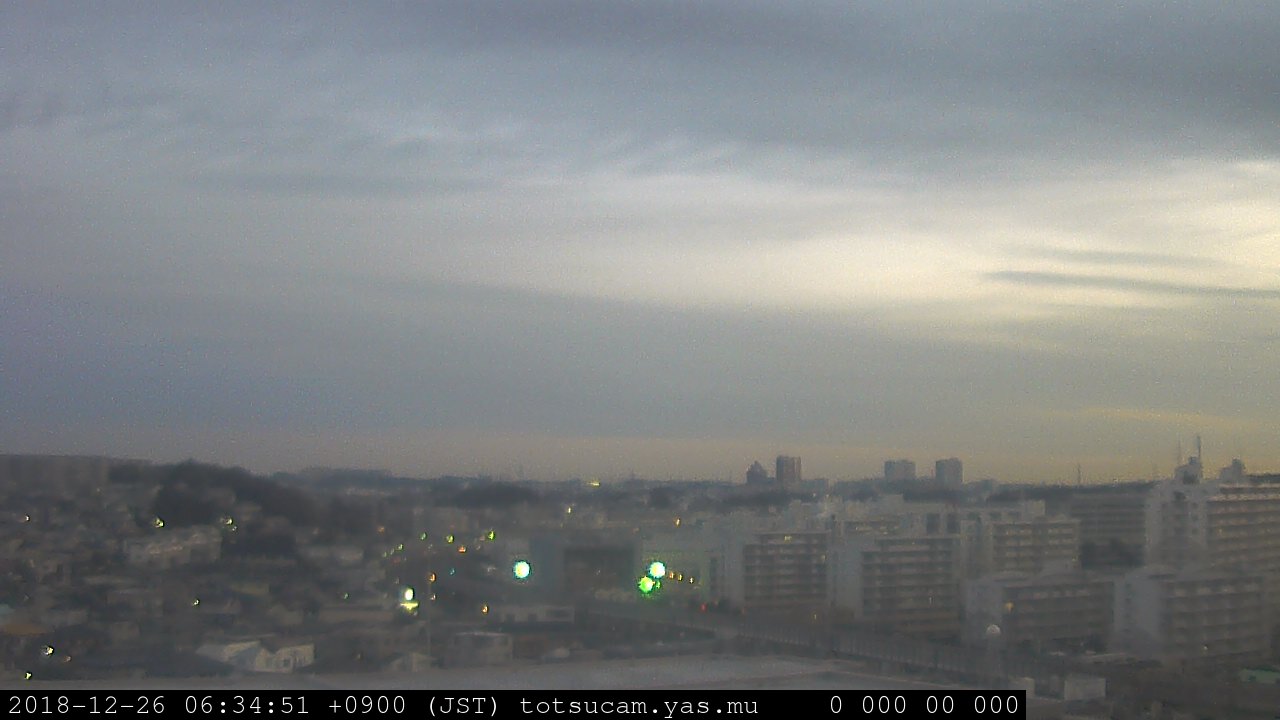 横浜市戸塚駅周辺から 東戸塚方面(北北東)を望む展望カメラの映像です。 左は現在の映像です。 下に並んでいるのは、 7日間に亘る日の出どき、昼間、夕暮れどきの写真(サムネイル)です。 それぞれ、日の出15分前、南中時、日没20分後の写真となっています。 各写真の下にはmpeg形式の動画へのリンクがあります。 それぞれ、日の出、南中、日没の前後1時間の画像です。 右欄にはその日24時間の動画へのリンクがあります。 この7日間以外は日付が一覧表示されています。 日付部分をクリックすると、 その日付から7日分が展開されて表示されます。