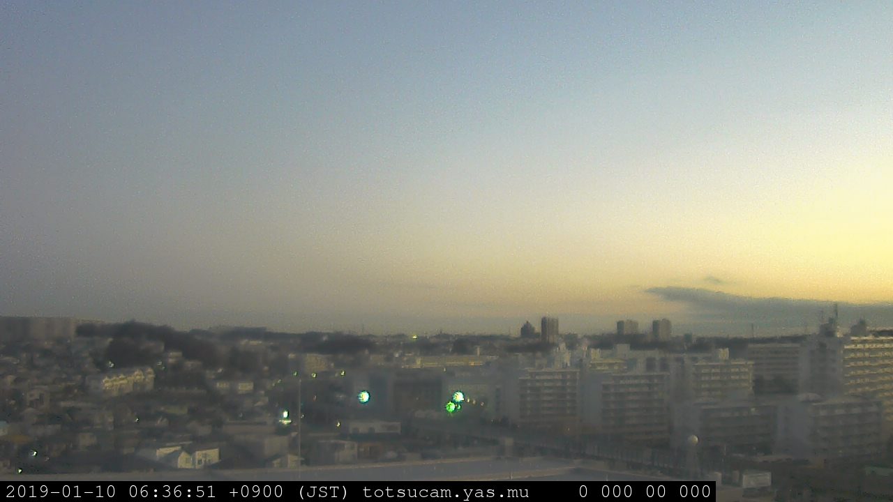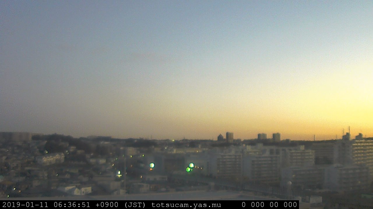 横浜市戸塚駅周辺から 東戸塚方面(北北東)を望む展望カメラの映像です。 左は現在の映像です。 下に並んでいるのは、 7日間に亘る日の出どき、昼間、夕暮れどきの写真(サムネイル)です。 それぞれ、日の出15分前、南中時、日没20分後の写真となっています。 各写真の下にはmpeg形式の動画へのリンクがあります。 それぞれ、日の出、南中、日没の前後1時間の画像です。 右欄にはその日24時間の動画へのリンクがあります。 この7日間以外は日付が一覧表示されています。 日付部分をクリックすると、 その日付から7日分が展開されて表示されます。