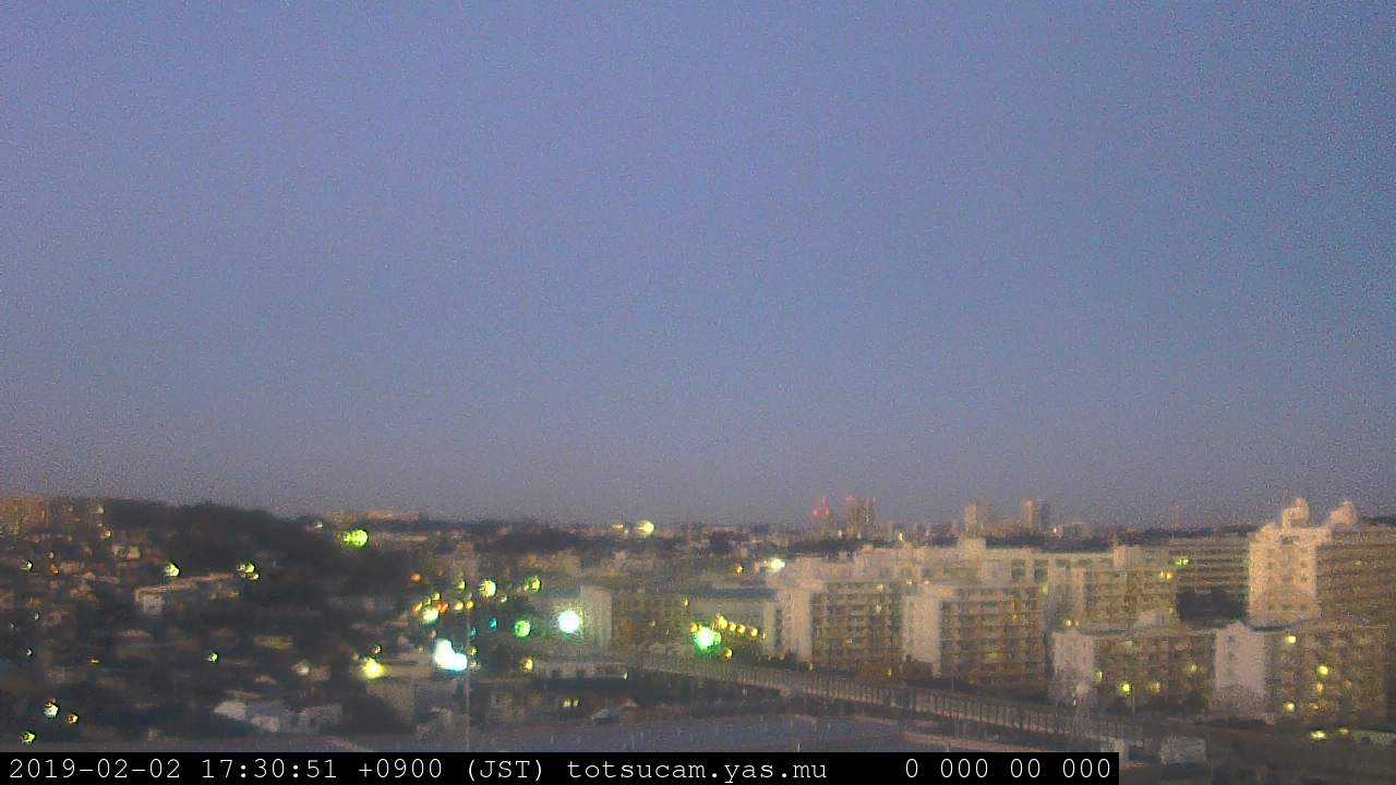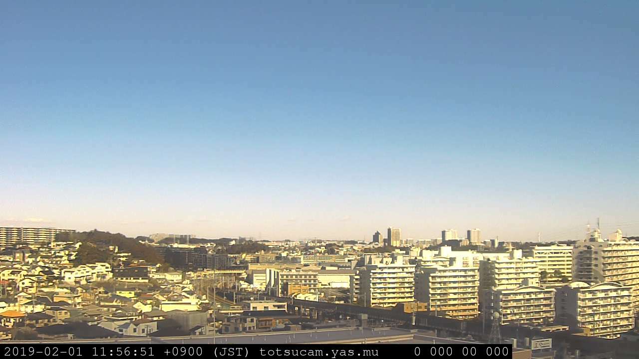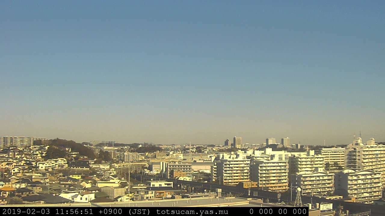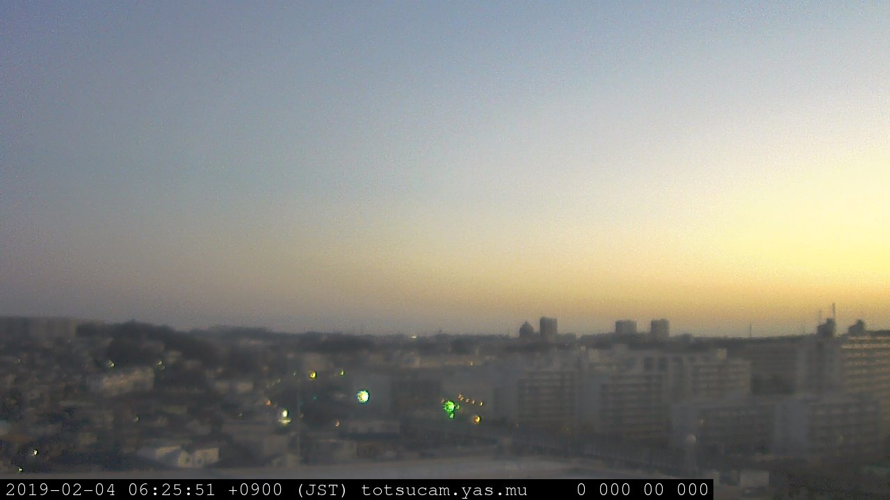 横浜市戸塚駅周辺から 東戸塚方面(北北東)を望む展望カメラの映像です。 左は現在の映像です。 下に並んでいるのは、 7日間に亘る日の出どき、昼間、夕暮れどきの写真(サムネイル)です。 それぞれ、日の出15分前、南中時、日没20分後の写真となっています。 各写真の下にはmpeg形式の動画へのリンクがあります。 それぞれ、日の出、南中、日没の前後1時間の画像です。 右欄にはその日24時間の動画へのリンクがあります。 この7日間以外は日付が一覧表示されています。 日付部分をクリックすると、 その日付から7日分が展開されて表示されます。
