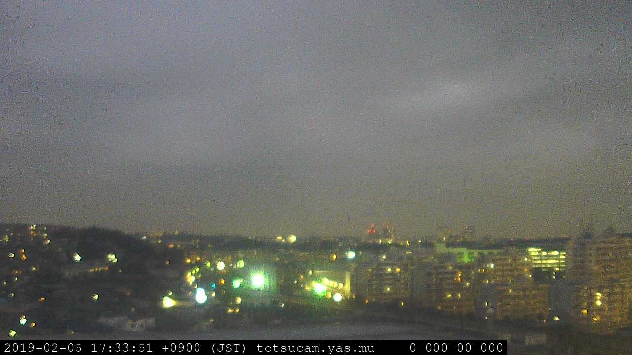 適度に曇った日の雲の動き (例: 2005-10-24) がとても楽しめます。 正面を横切っている高架は横須賀線下りです。 その下に横須賀線上り、東海道線、同貨物線が走っていますが、 高架に隠れていてよく見えません。 夜間は特に中央左寄りの車の動きがよく見えます。