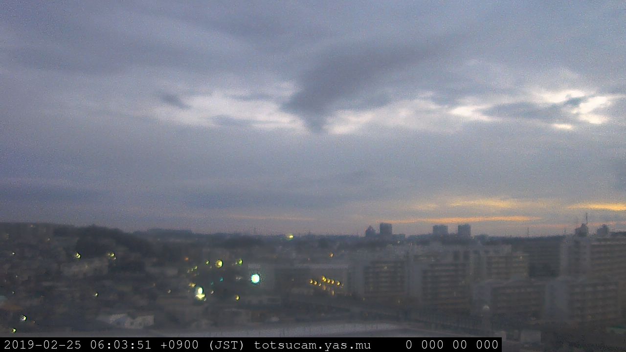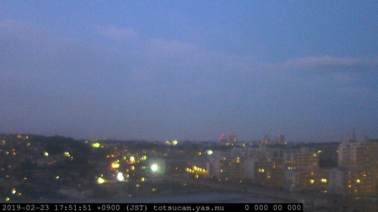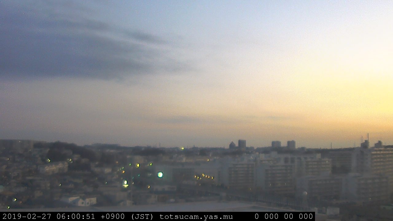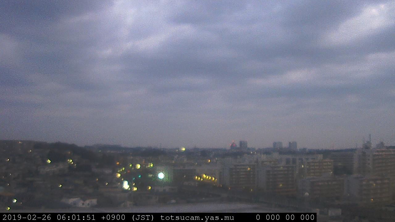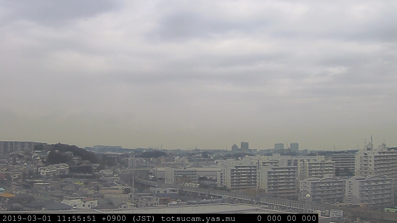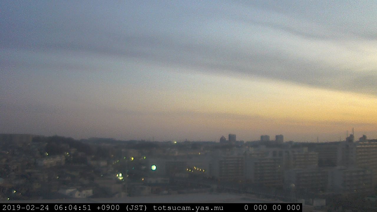 横浜市戸塚駅周辺から 東戸塚方面(北北東)を望む展望カメラの映像です。 左は現在の映像です。 下に並んでいるのは、 7日間に亘る日の出どき、昼間、夕暮れどきの写真(サムネイル)です。 それぞれ、日の出15分前、南中時、日没20分後の写真となっています。 各写真の下にはmpeg形式の動画へのリンクがあります。 それぞれ、日の出、南中、日没の前後1時間の画像です。 右欄にはその日24時間の動画へのリンクがあります。 この7日間以外は日付が一覧表示されています。 日付部分をクリックすると、 その日付から7日分が展開されて表示されます。