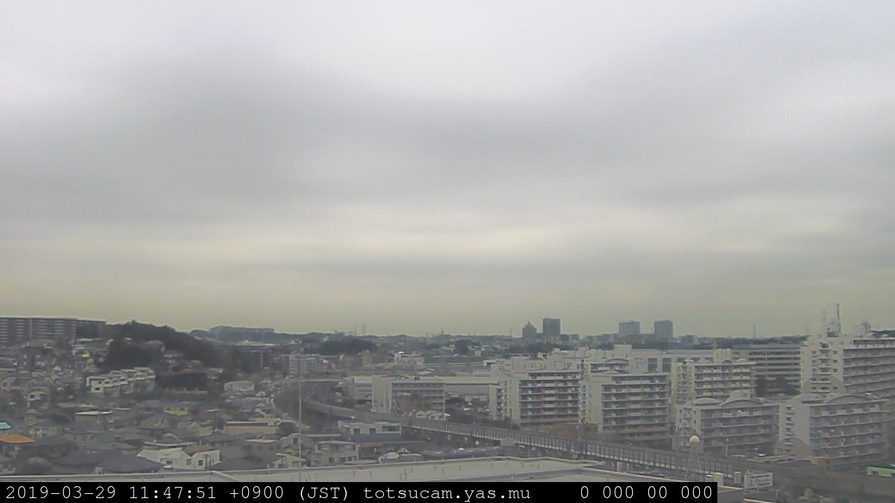 適度に曇った日の雲の動き (例: 2005-10-24) がとても楽しめます。 正面を横切っている高架は横須賀線下りです。 その下に横須賀線上り、東海道線、同貨物線が走っていますが、 高架に隠れていてよく見えません。 夜間は特に中央左寄りの車の動きがよく見えます。