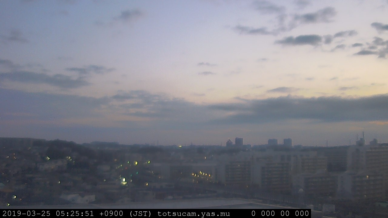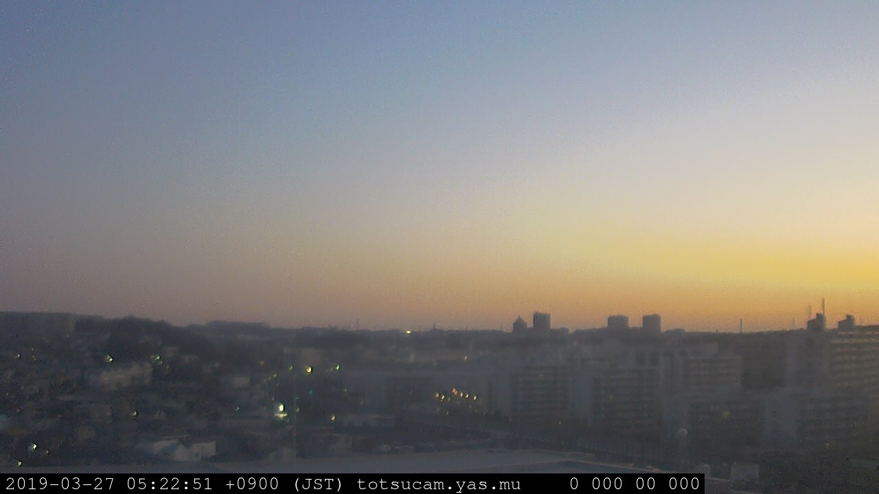 横浜市戸塚駅周辺から 東戸塚方面(北北東)を望む展望カメラの映像です。 左は現在の映像です。 下に並んでいるのは、 7日間に亘る日の出どき、昼間、夕暮れどきの写真(サムネイル)です。 それぞれ、日の出15分前、南中時、日没20分後の写真となっています。 各写真の下にはmpeg形式の動画へのリンクがあります。 それぞれ、日の出、南中、日没の前後1時間の画像です。 右欄にはその日24時間の動画へのリンクがあります。 この7日間以外は日付が一覧表示されています。 日付部分をクリックすると、 その日付から7日分が展開されて表示されます。