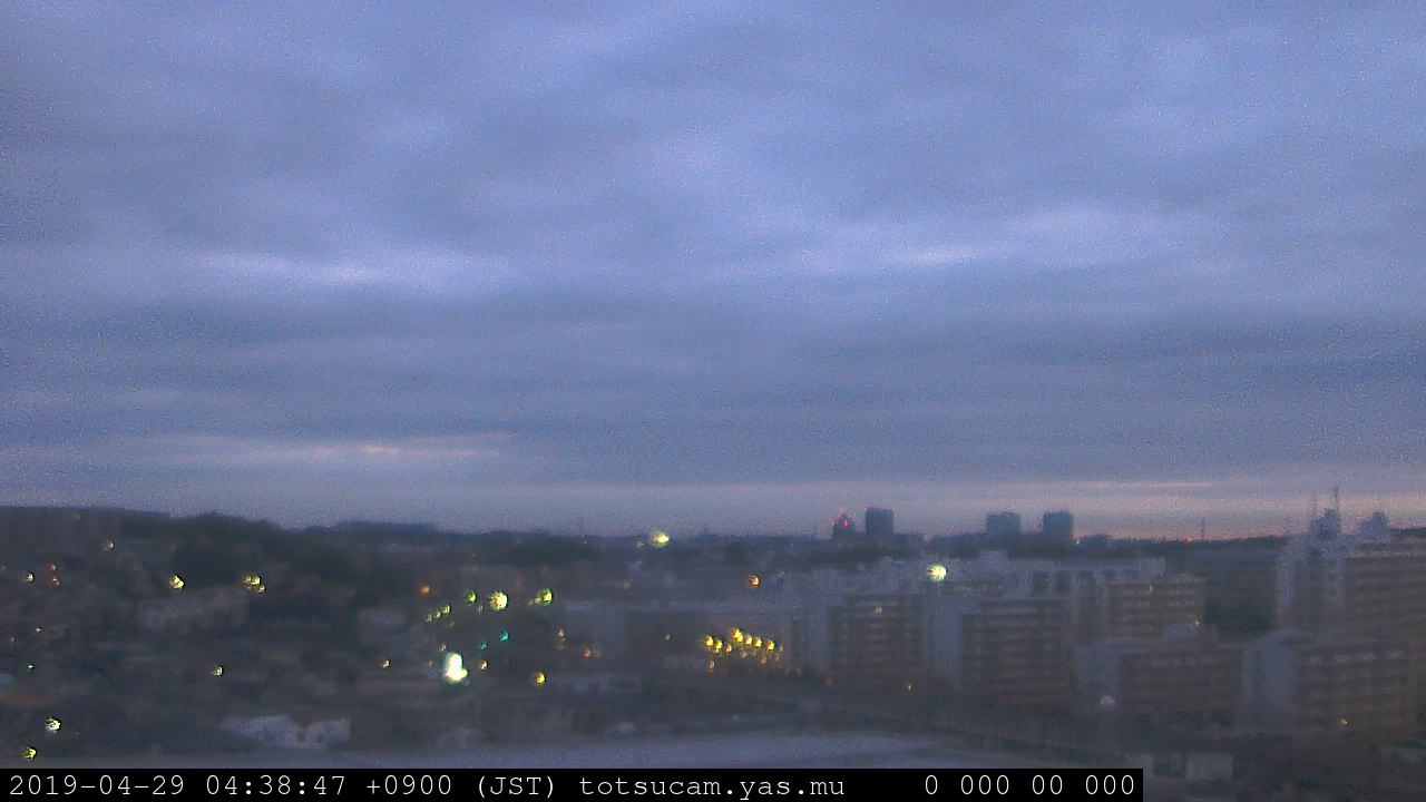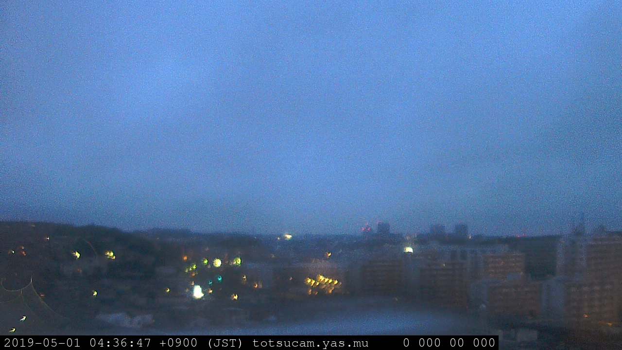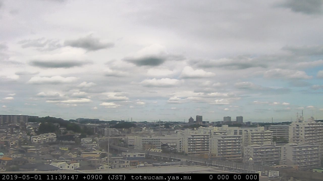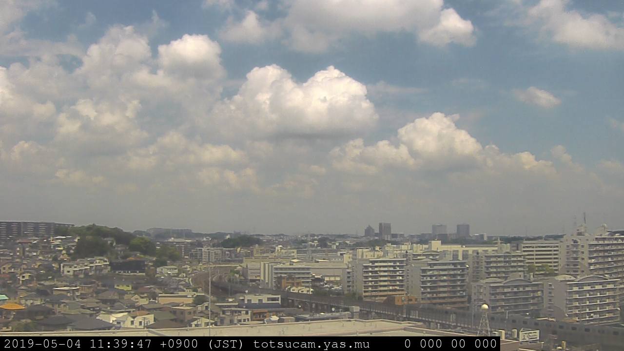 横浜市戸塚駅周辺から 東戸塚方面(北北東)を望む展望カメラの映像です。 左は現在の映像です。 下に並んでいるのは、 7日間に亘る日の出どき、昼間、夕暮れどきの写真(サムネイル)です。 それぞれ、日の出15分前、南中時、日没20分後の写真となっています。 各写真の下にはmpeg形式の動画へのリンクがあります。 それぞれ、日の出、南中、日没の前後1時間の画像です。 右欄にはその日24時間の動画へのリンクがあります。 この7日間以外は日付が一覧表示されています。 日付部分をクリックすると、 その日付から7日分が展開されて表示されます。