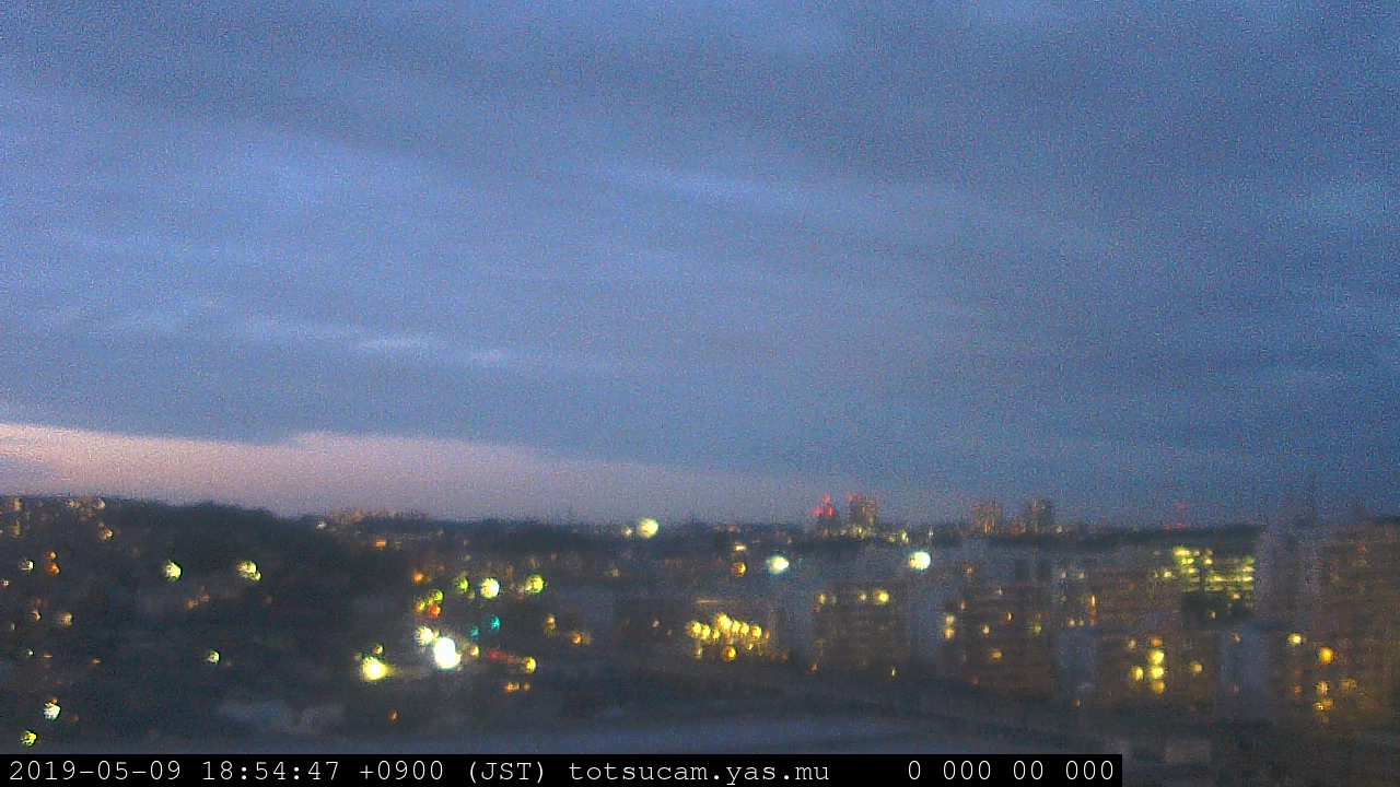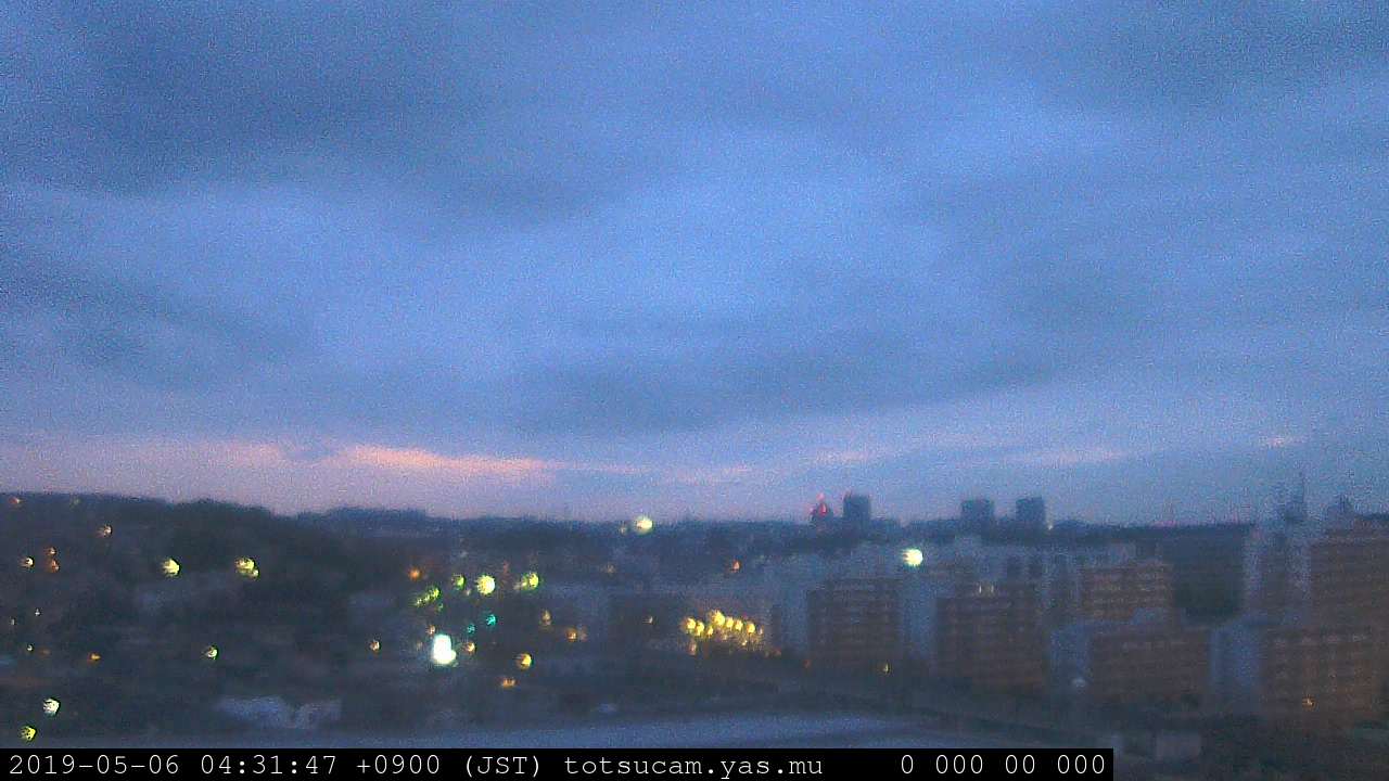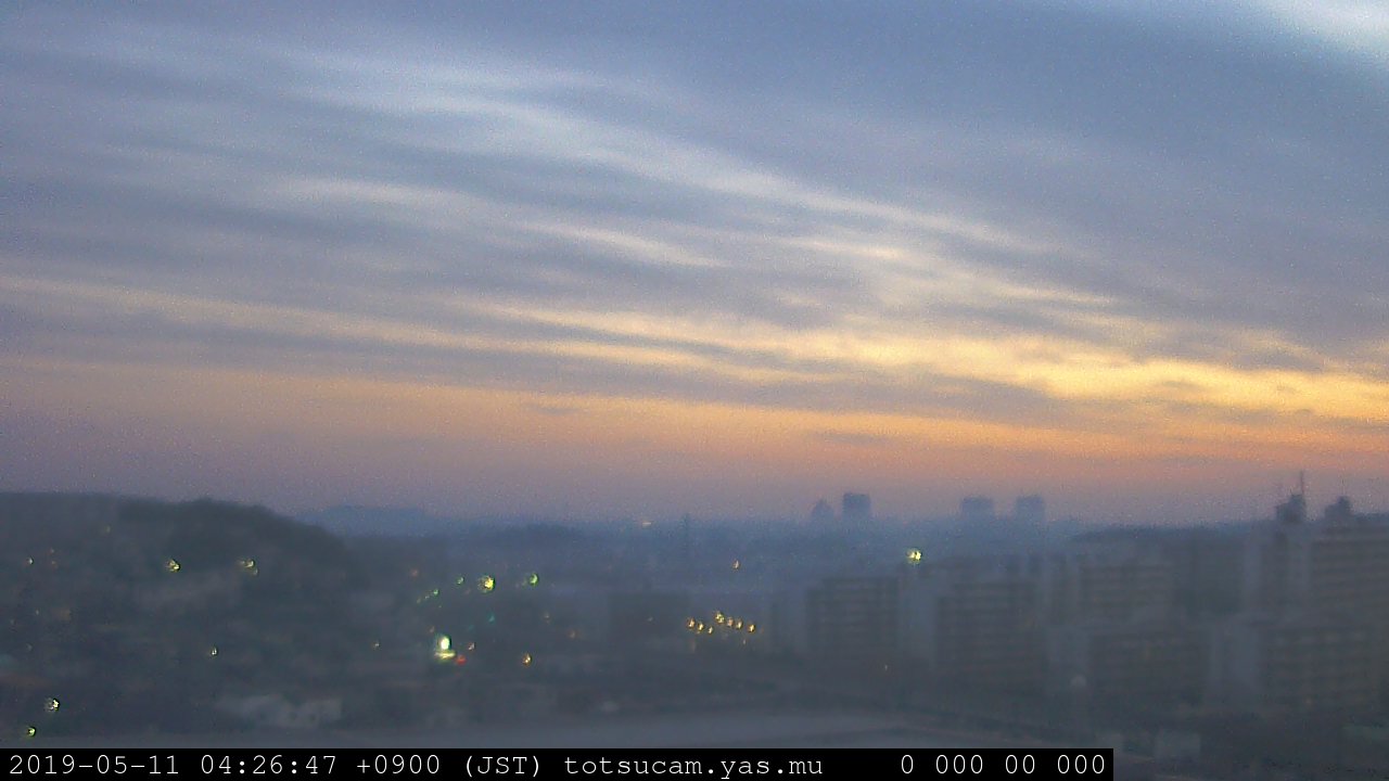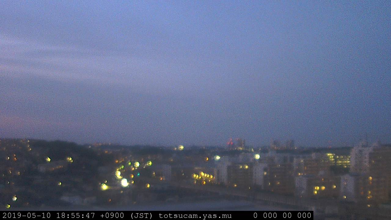 横浜市戸塚駅周辺から 東戸塚方面(北北東)を望む展望カメラの映像です。 左は現在の映像です。 下に並んでいるのは、 7日間に亘る日の出どき、昼間、夕暮れどきの写真(サムネイル)です。 それぞれ、日の出15分前、南中時、日没20分後の写真となっています。 各写真の下にはmpeg形式の動画へのリンクがあります。 それぞれ、日の出、南中、日没の前後1時間の画像です。 右欄にはその日24時間の動画へのリンクがあります。 この7日間以外は日付が一覧表示されています。 日付部分をクリックすると、 その日付から7日分が展開されて表示されます。