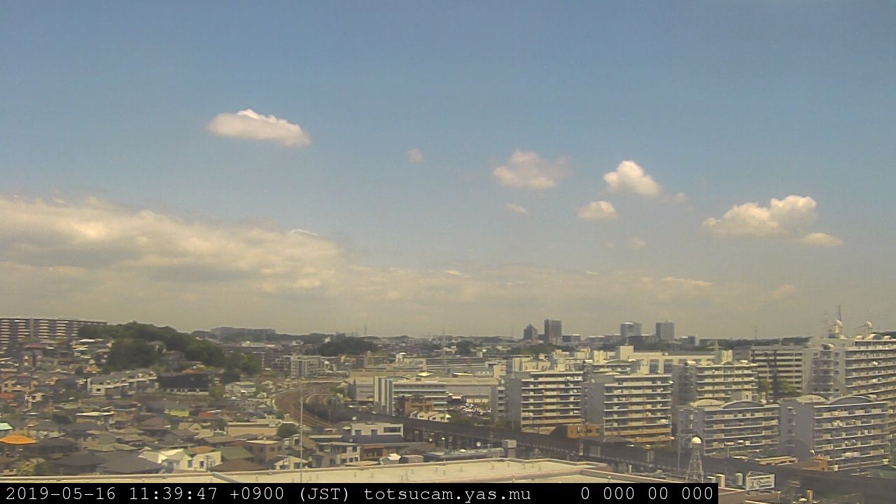 横浜市戸塚駅周辺から 東戸塚方面(北北東)を望む展望カメラの映像です。 左は現在の映像です。 下に並んでいるのは、 7日間に亘る日の出どき、昼間、夕暮れどきの写真(サムネイル)です。 それぞれ、日の出15分前、南中時、日没20分後の写真となっています。 各写真の下にはmpeg形式の動画へのリンクがあります。 それぞれ、日の出、南中、日没の前後1時間の画像です。 右欄にはその日24時間の動画へのリンクがあります。 この7日間以外は日付が一覧表示されています。 日付部分をクリックすると、 その日付から7日分が展開されて表示されます。