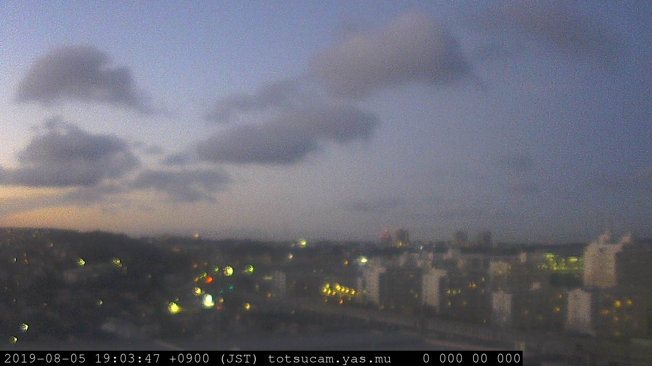 横浜市戸塚駅周辺から 東戸塚方面(北北東)を望む展望カメラの映像です。 左は現在の映像です。 下に並んでいるのは、 7日間に亘る日の出どき、昼間、夕暮れどきの写真(サムネイル)です。 それぞれ、日の出15分前、南中時、日没20分後の写真となっています。 各写真の下にはmpeg形式の動画へのリンクがあります。 それぞれ、日の出、南中、日没の前後1時間の画像です。 右欄にはその日24時間の動画へのリンクがあります。 この7日間以外は日付が一覧表示されています。 日付部分をクリックすると、 その日付から7日分が展開されて表示されます。