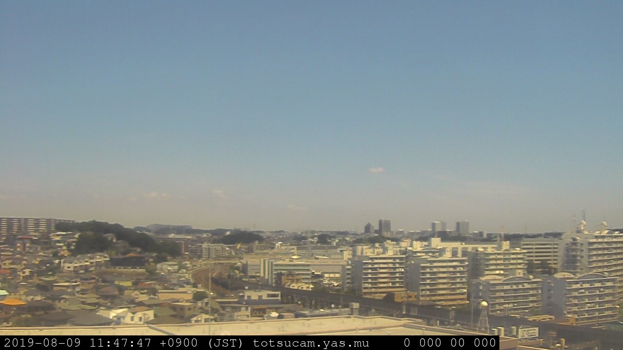 横浜市戸塚駅周辺から 東戸塚方面(北北東)を望む展望カメラの映像です。 左は現在の映像です。 下に並んでいるのは、 7日間に亘る日の出どき、昼間、夕暮れどきの写真(サムネイル)です。 それぞれ、日の出15分前、南中時、日没20分後の写真となっています。 各写真の下にはmpeg形式の動画へのリンクがあります。 それぞれ、日の出、南中、日没の前後1時間の画像です。 右欄にはその日24時間の動画へのリンクがあります。 この7日間以外は日付が一覧表示されています。 日付部分をクリックすると、 その日付から7日分が展開されて表示されます。