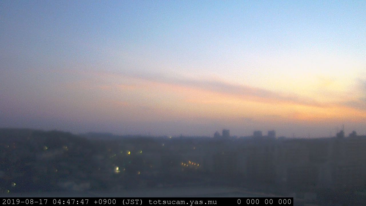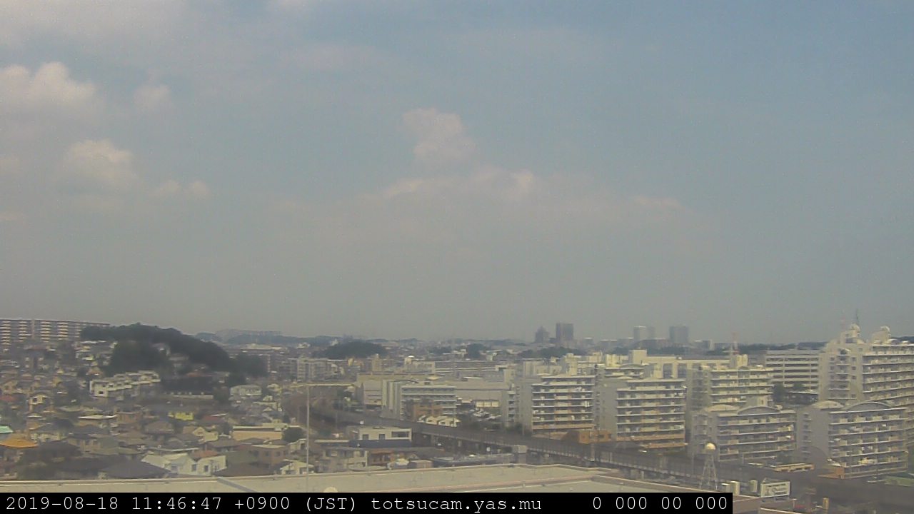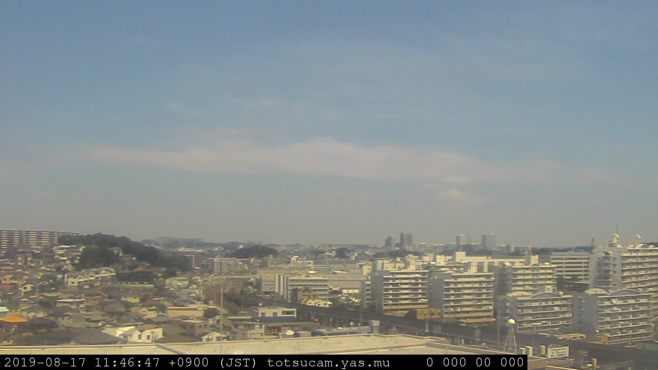 横浜市戸塚駅周辺から 東戸塚方面(北北東)を望む展望カメラの映像です。 左は現在の映像です。 下に並んでいるのは、 7日間に亘る日の出どき、昼間、夕暮れどきの写真(サムネイル)です。 それぞれ、日の出15分前、南中時、日没20分後の写真となっています。 各写真の下にはmpeg形式の動画へのリンクがあります。 それぞれ、日の出、南中、日没の前後1時間の画像です。 右欄にはその日24時間の動画へのリンクがあります。 この7日間以外は日付が一覧表示されています。 日付部分をクリックすると、 その日付から7日分が展開されて表示されます。