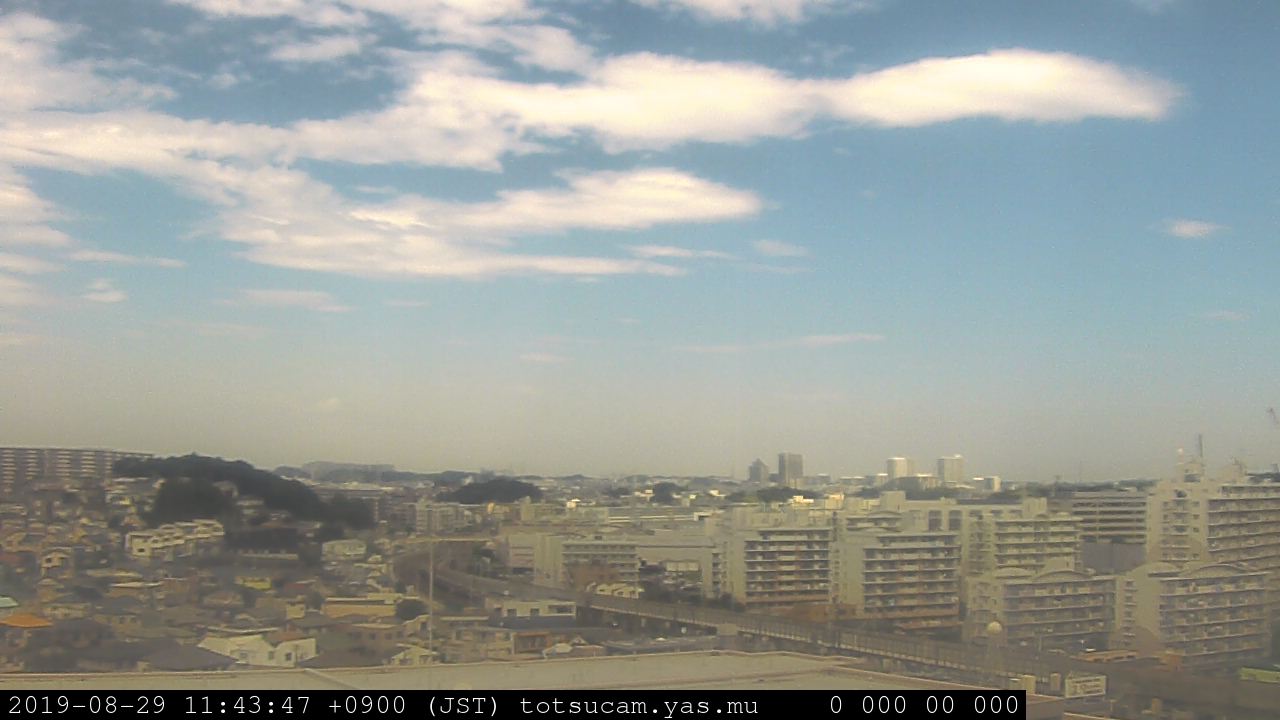 横浜市戸塚駅周辺から 東戸塚方面(北北東)を望む展望カメラの映像です。 左は現在の映像です。 下に並んでいるのは、 7日間に亘る日の出どき、昼間、夕暮れどきの写真(サムネイル)です。 それぞれ、日の出15分前、南中時、日没20分後の写真となっています。 各写真の下にはmpeg形式の動画へのリンクがあります。 それぞれ、日の出、南中、日没の前後1時間の画像です。 右欄にはその日24時間の動画へのリンクがあります。 この7日間以外は日付が一覧表示されています。 日付部分をクリックすると、 その日付から7日分が展開されて表示されます。