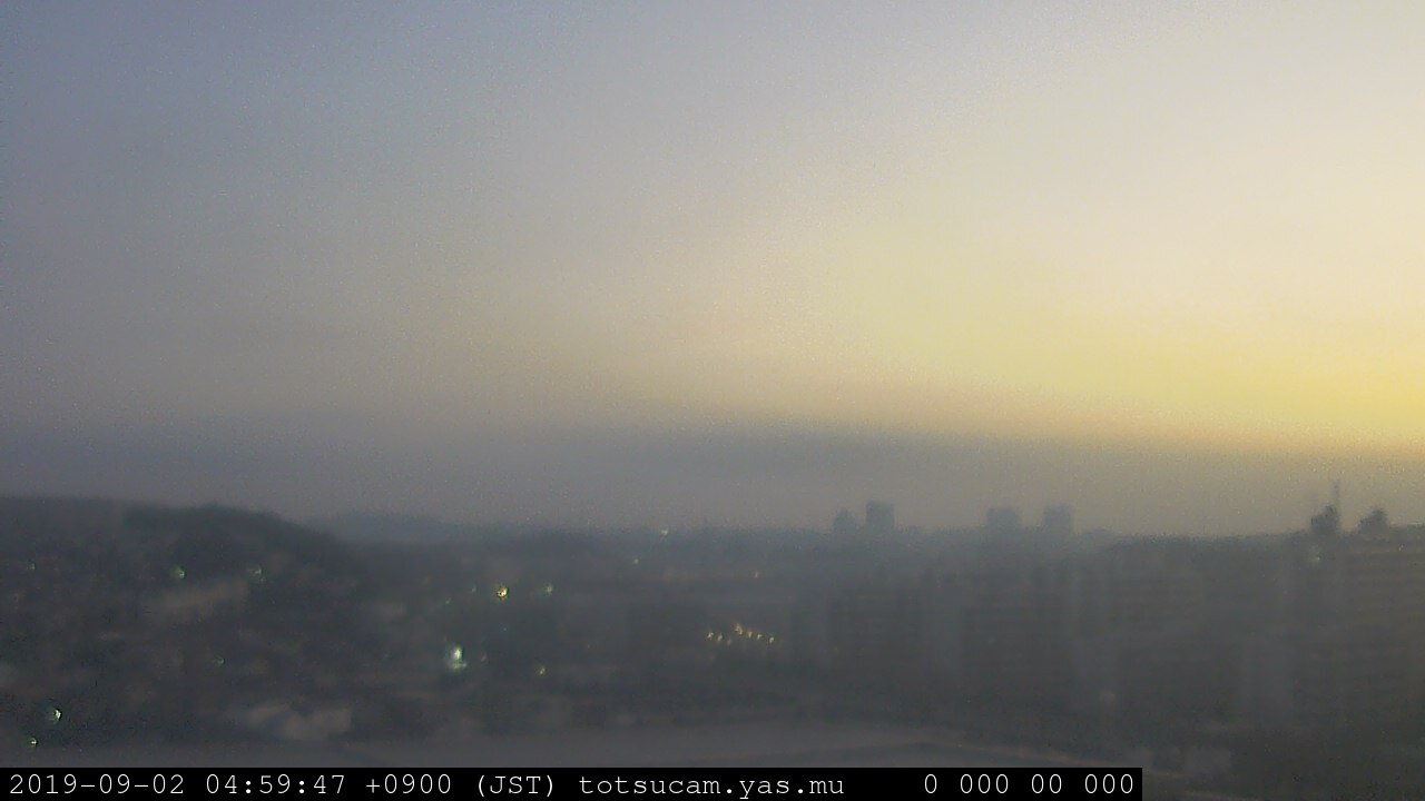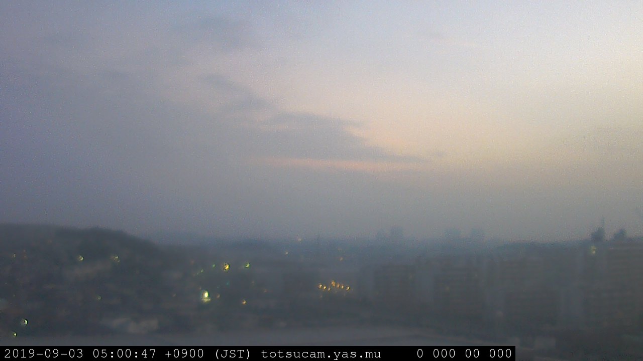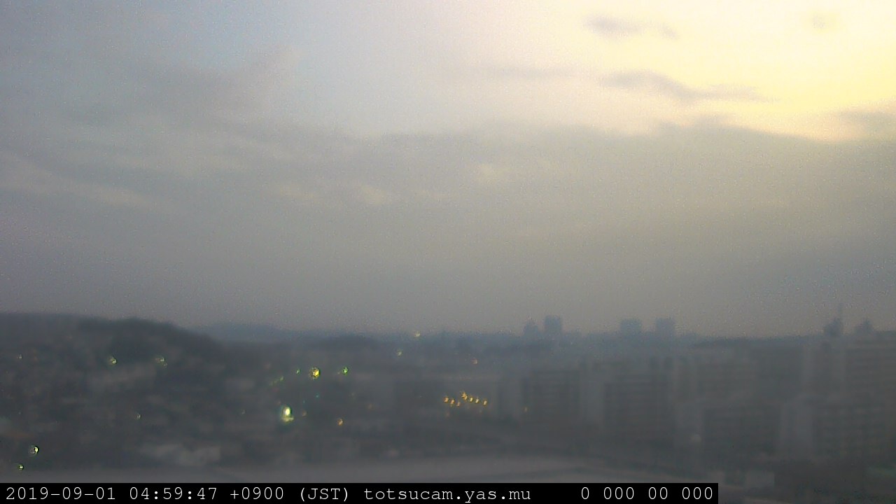 横浜市戸塚駅周辺から 東戸塚方面(北北東)を望む展望カメラの映像です。 左は現在の映像です。 下に並んでいるのは、 7日間に亘る日の出どき、昼間、夕暮れどきの写真(サムネイル)です。 それぞれ、日の出15分前、南中時、日没20分後の写真となっています。 各写真の下にはmpeg形式の動画へのリンクがあります。 それぞれ、日の出、南中、日没の前後1時間の画像です。 右欄にはその日24時間の動画へのリンクがあります。 この7日間以外は日付が一覧表示されています。 日付部分をクリックすると、 その日付から7日分が展開されて表示されます。
