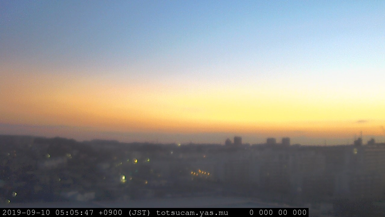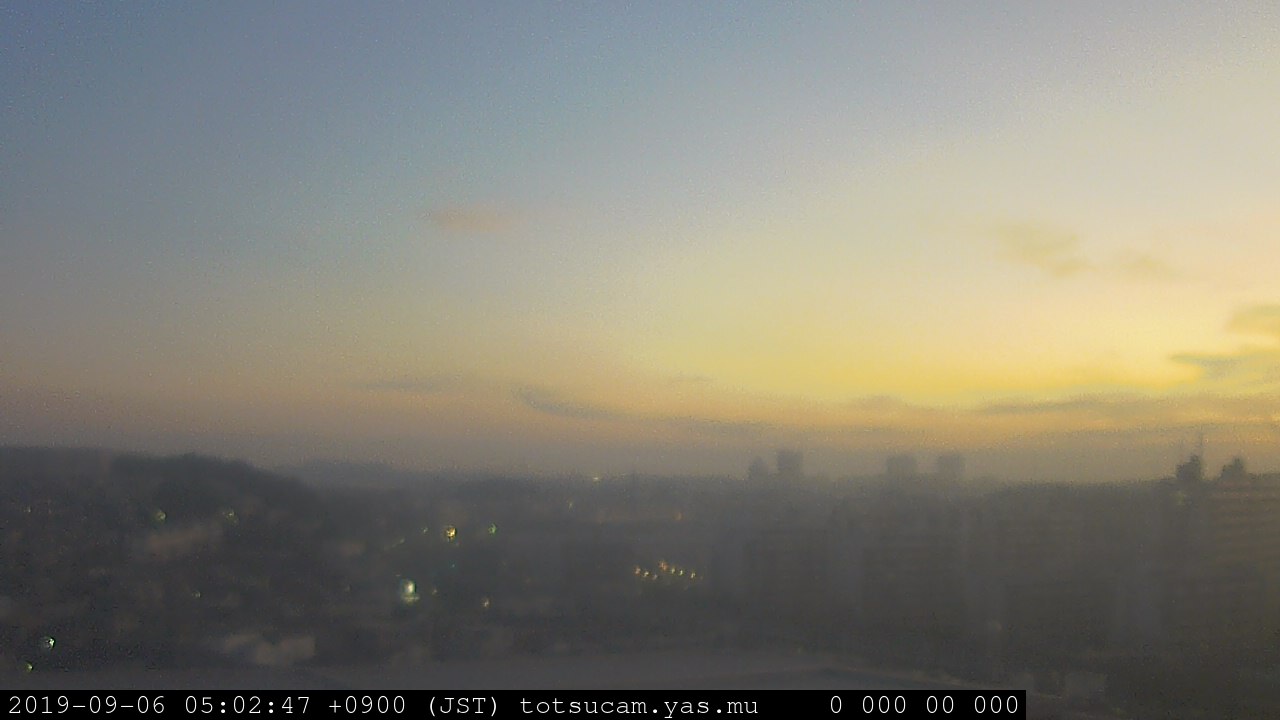 横浜市戸塚駅周辺から 東戸塚方面(北北東)を望む展望カメラの映像です。 左は現在の映像です。 下に並んでいるのは、 7日間に亘る日の出どき、昼間、夕暮れどきの写真(サムネイル)です。 それぞれ、日の出15分前、南中時、日没20分後の写真となっています。 各写真の下にはmpeg形式の動画へのリンクがあります。 それぞれ、日の出、南中、日没の前後1時間の画像です。 右欄にはその日24時間の動画へのリンクがあります。 この7日間以外は日付が一覧表示されています。 日付部分をクリックすると、 その日付から7日分が展開されて表示されます。