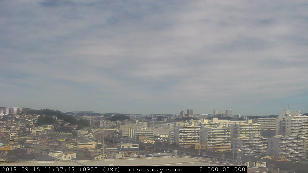 適度に曇った日の雲の動き (例: 2005-10-24) がとても楽しめます。 正面を横切っている高架は横須賀線下りです。 その下に横須賀線上り、東海道線、同貨物線が走っていますが、 高架に隠れていてよく見えません。 夜間は特に中央左寄りの車の動きがよく見えます。