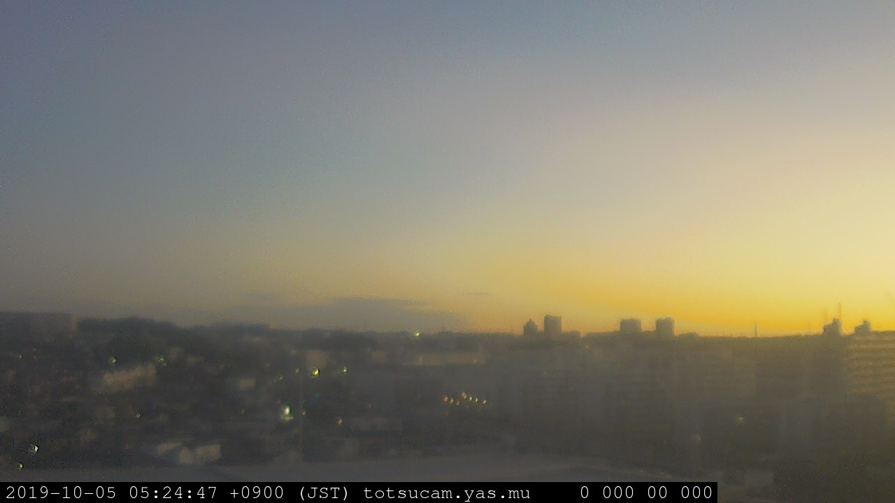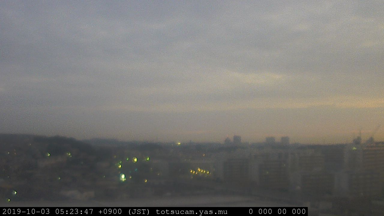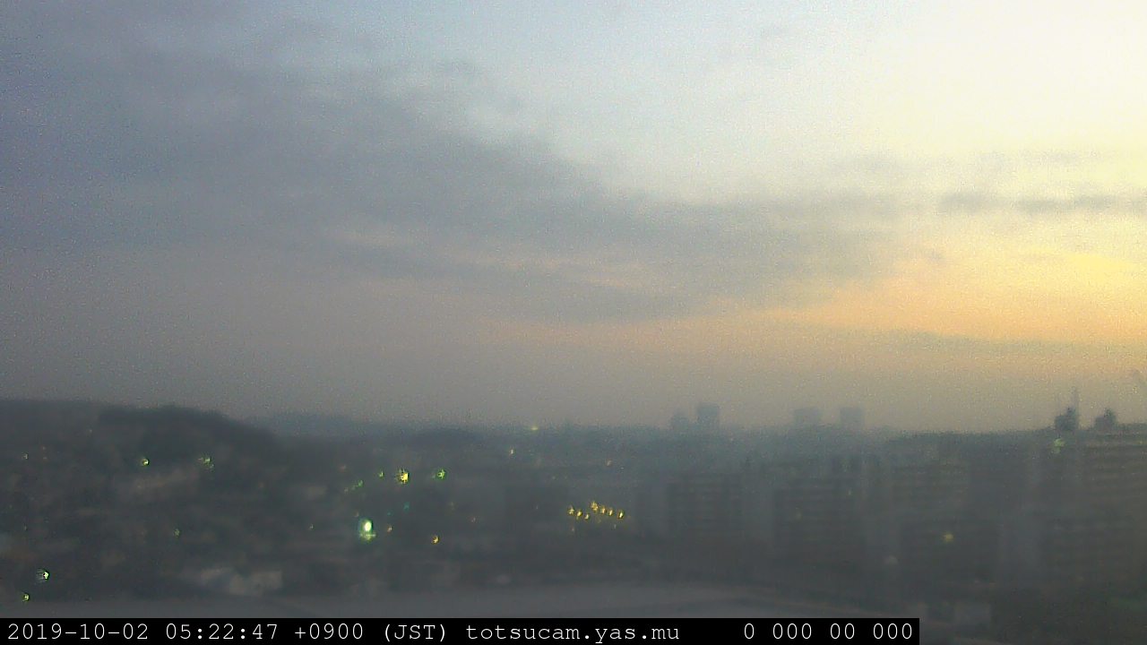 横浜市戸塚駅周辺から 東戸塚方面(北北東)を望む展望カメラの映像です。 左は現在の映像です。 下に並んでいるのは、 7日間に亘る日の出どき、昼間、夕暮れどきの写真(サムネイル)です。 それぞれ、日の出15分前、南中時、日没20分後の写真となっています。 各写真の下にはmpeg形式の動画へのリンクがあります。 それぞれ、日の出、南中、日没の前後1時間の画像です。 右欄にはその日24時間の動画へのリンクがあります。 この7日間以外は日付が一覧表示されています。 日付部分をクリックすると、 その日付から7日分が展開されて表示されます。