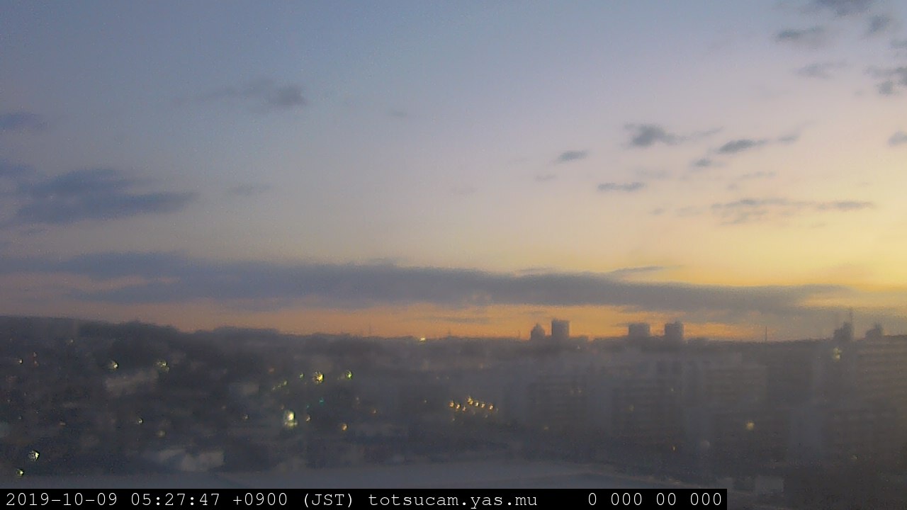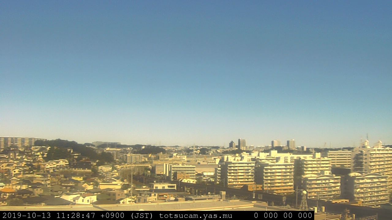 横浜市戸塚駅周辺から 東戸塚方面(北北東)を望む展望カメラの映像です。 左は現在の映像です。 下に並んでいるのは、 7日間に亘る日の出どき、昼間、夕暮れどきの写真(サムネイル)です。 それぞれ、日の出15分前、南中時、日没20分後の写真となっています。 各写真の下にはmpeg形式の動画へのリンクがあります。 それぞれ、日の出、南中、日没の前後1時間の画像です。 右欄にはその日24時間の動画へのリンクがあります。 この7日間以外は日付が一覧表示されています。 日付部分をクリックすると、 その日付から7日分が展開されて表示されます。