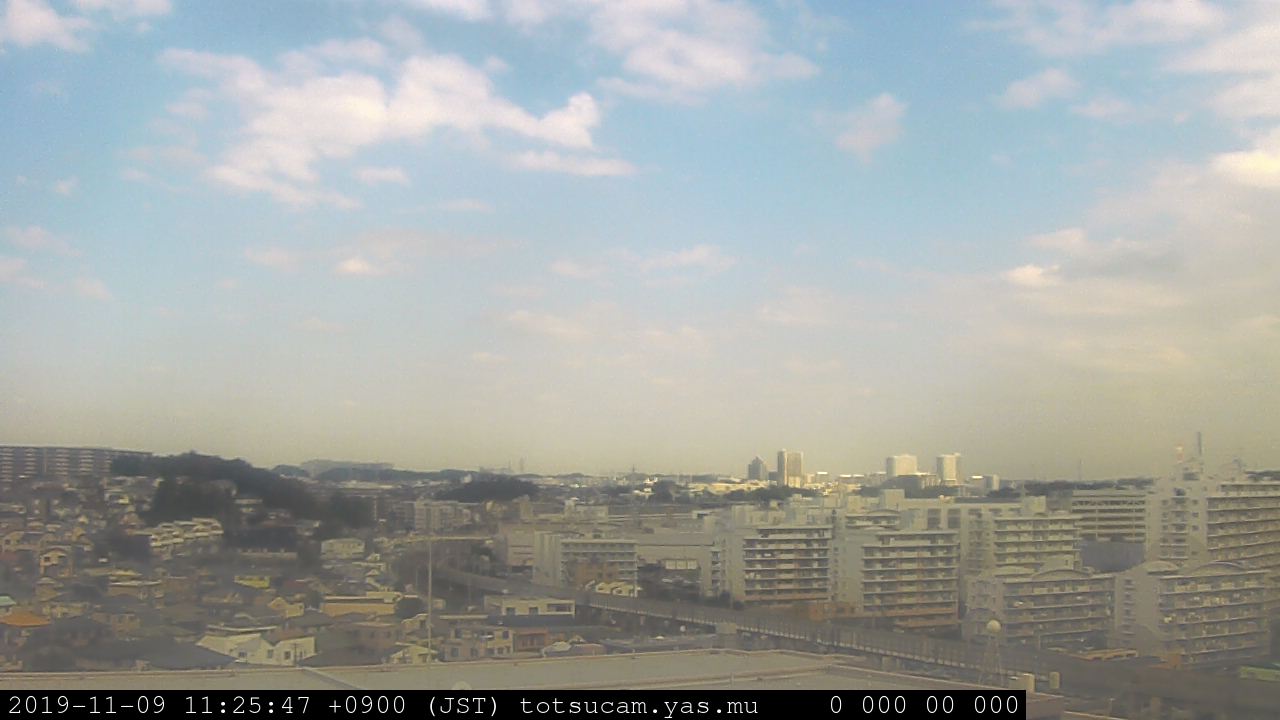 適度に曇った日の雲の動き (例: 2005-10-24) がとても楽しめます。 正面を横切っている高架は横須賀線下りです。 その下に横須賀線上り、東海道線、同貨物線が走っていますが、 高架に隠れていてよく見えません。 夜間は特に中央左寄りの車の動きがよく見えます。