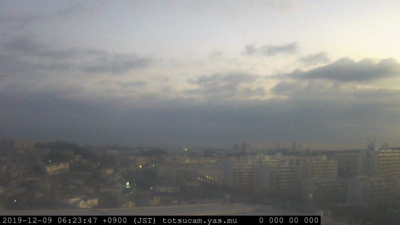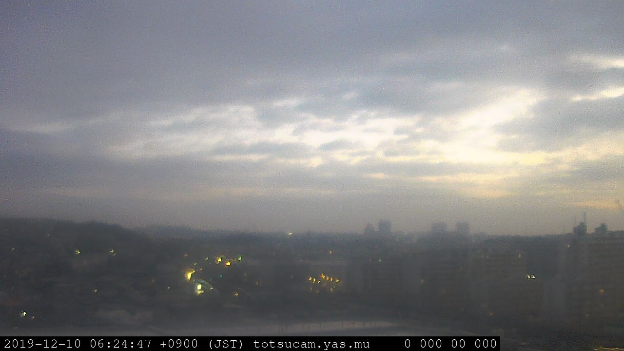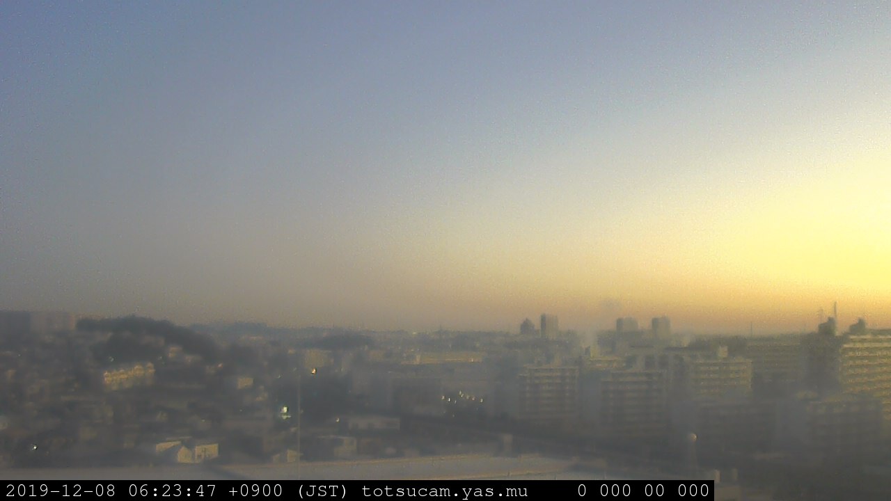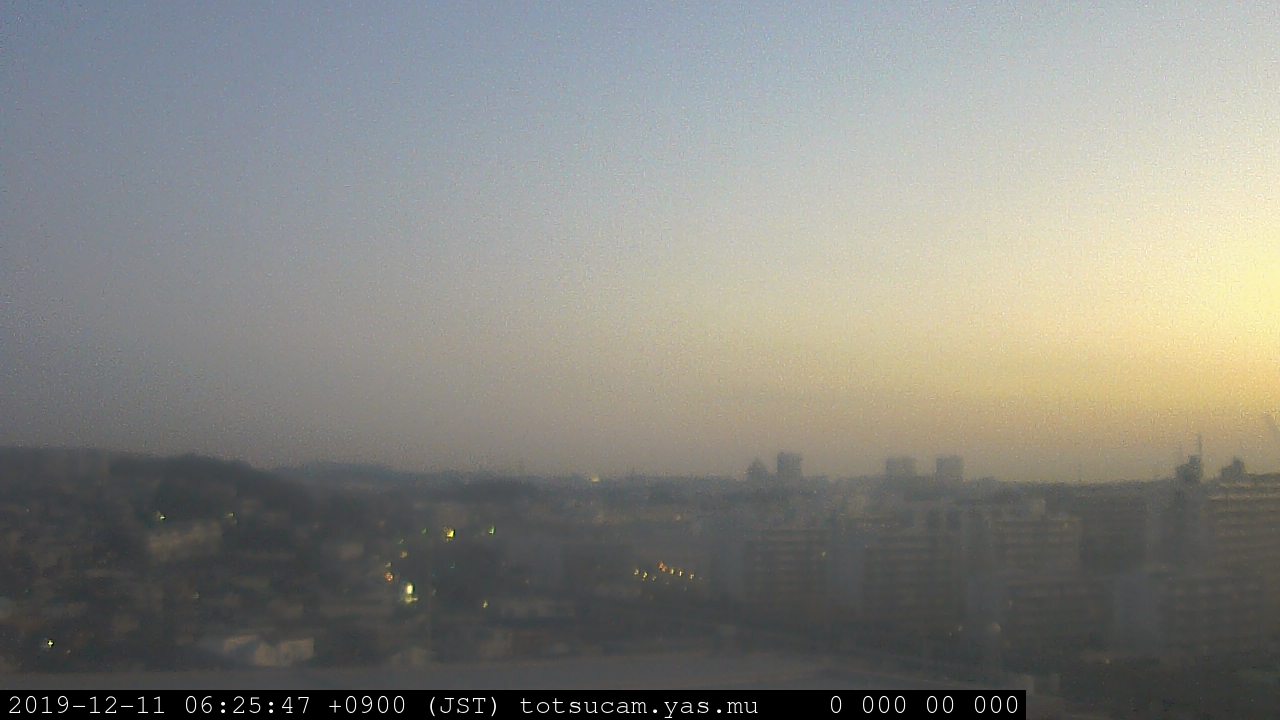 横浜市戸塚駅周辺から 東戸塚方面(北北東)を望む展望カメラの映像です。 左は現在の映像です。 下に並んでいるのは、 7日間に亘る日の出どき、昼間、夕暮れどきの写真(サムネイル)です。 それぞれ、日の出15分前、南中時、日没20分後の写真となっています。 各写真の下にはmpeg形式の動画へのリンクがあります。 それぞれ、日の出、南中、日没の前後1時間の画像です。 右欄にはその日24時間の動画へのリンクがあります。 この7日間以外は日付が一覧表示されています。 日付部分をクリックすると、 その日付から7日分が展開されて表示されます。