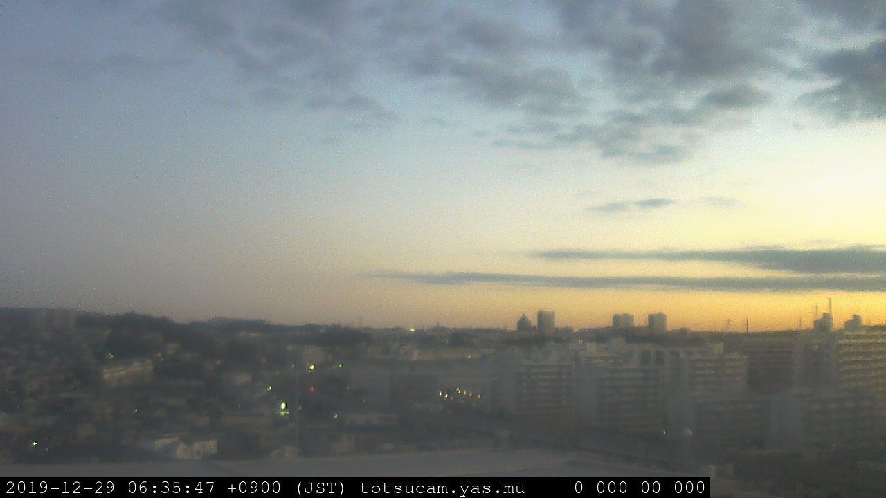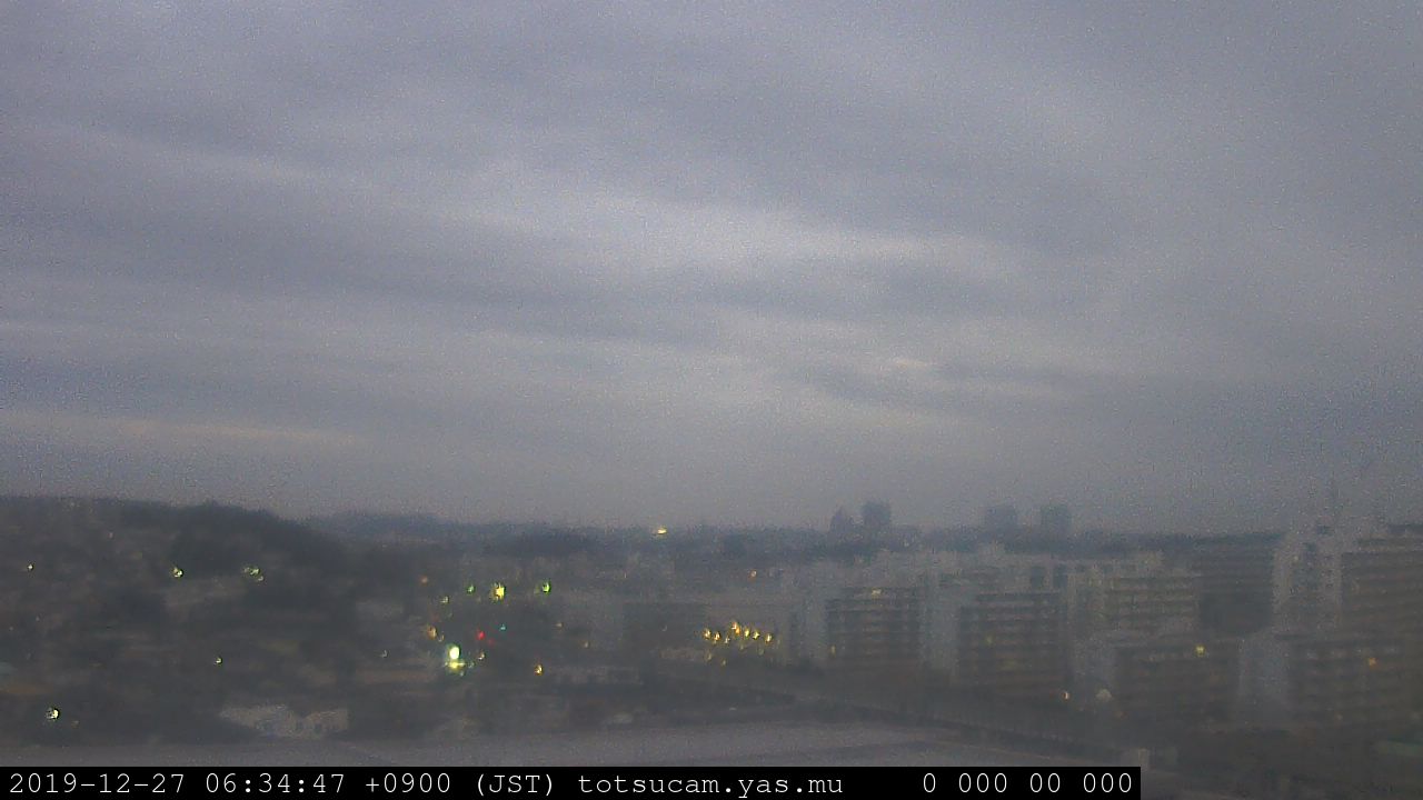 横浜市戸塚駅周辺から 東戸塚方面(北北東)を望む展望カメラの映像です。 左は現在の映像です。 下に並んでいるのは、 7日間に亘る日の出どき、昼間、夕暮れどきの写真(サムネイル)です。 それぞれ、日の出15分前、南中時、日没20分後の写真となっています。 各写真の下にはmpeg形式の動画へのリンクがあります。 それぞれ、日の出、南中、日没の前後1時間の画像です。 右欄にはその日24時間の動画へのリンクがあります。 この7日間以外は日付が一覧表示されています。 日付部分をクリックすると、 その日付から7日分が展開されて表示されます。
