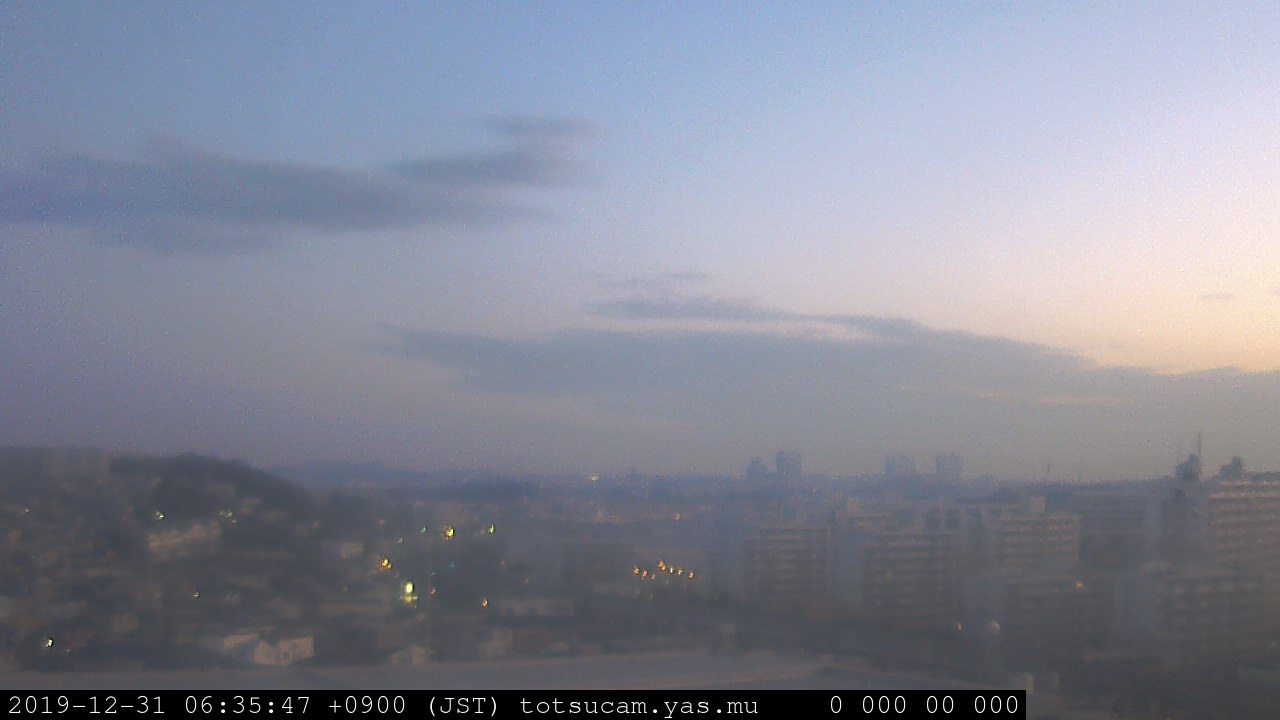 横浜市戸塚駅周辺から 東戸塚方面(北北東)を望む展望カメラの映像です。 左は現在の映像です。 下に並んでいるのは、 7日間に亘る日の出どき、昼間、夕暮れどきの写真(サムネイル)です。 それぞれ、日の出15分前、南中時、日没20分後の写真となっています。 各写真の下にはmpeg形式の動画へのリンクがあります。 それぞれ、日の出、南中、日没の前後1時間の画像です。 右欄にはその日24時間の動画へのリンクがあります。 この7日間以外は日付が一覧表示されています。 日付部分をクリックすると、 その日付から7日分が展開されて表示されます。