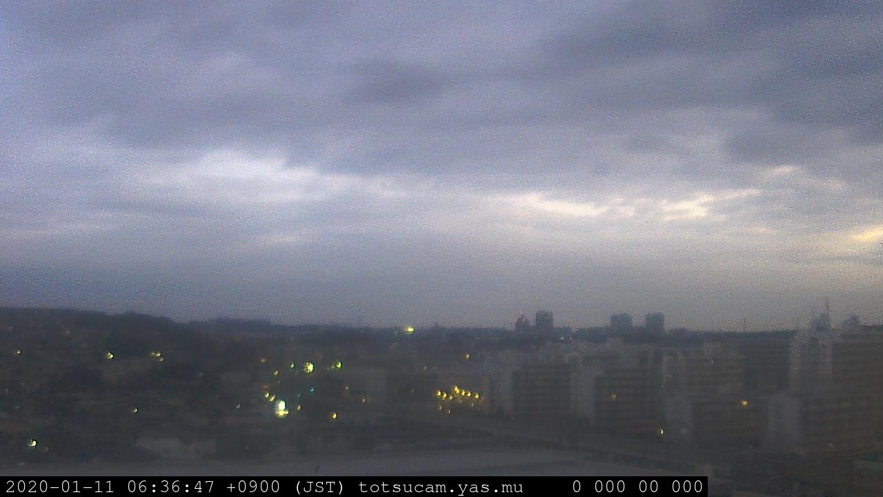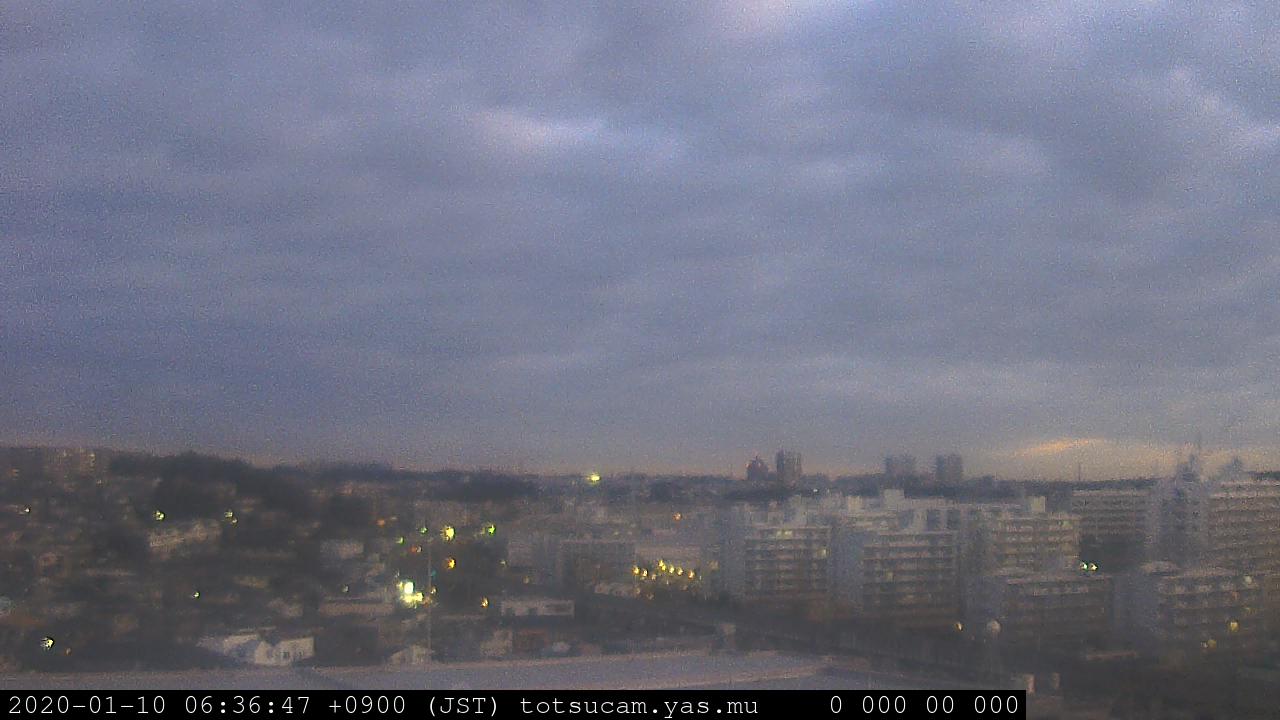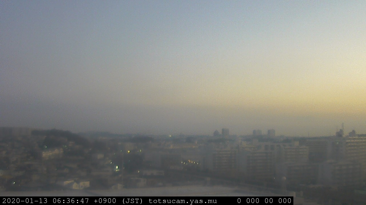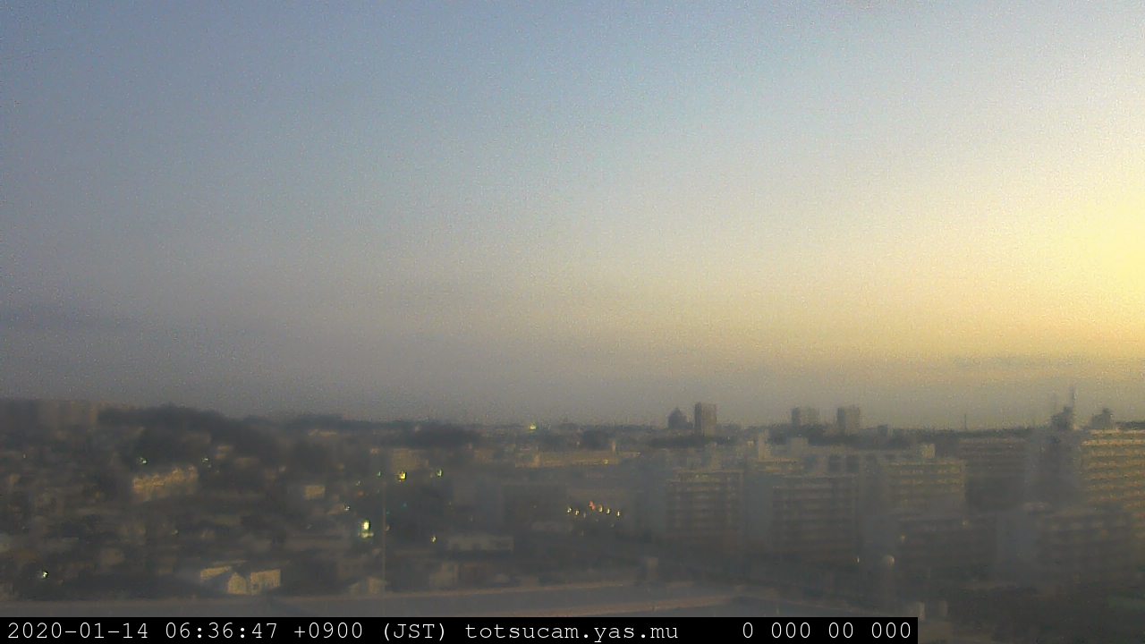 横浜市戸塚駅周辺から 東戸塚方面(北北東)を望む展望カメラの映像です。 左は現在の映像です。 下に並んでいるのは、 7日間に亘る日の出どき、昼間、夕暮れどきの写真(サムネイル)です。 それぞれ、日の出15分前、南中時、日没20分後の写真となっています。 各写真の下にはmpeg形式の動画へのリンクがあります。 それぞれ、日の出、南中、日没の前後1時間の画像です。 右欄にはその日24時間の動画へのリンクがあります。 この7日間以外は日付が一覧表示されています。 日付部分をクリックすると、 その日付から7日分が展開されて表示されます。