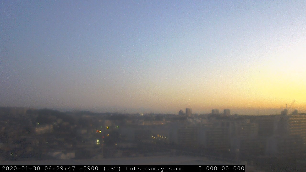 横浜市戸塚駅周辺から 東戸塚方面(北北東)を望む展望カメラの映像です。 左は現在の映像です。 下に並んでいるのは、 7日間に亘る日の出どき、昼間、夕暮れどきの写真(サムネイル)です。 それぞれ、日の出15分前、南中時、日没20分後の写真となっています。 各写真の下にはmpeg形式の動画へのリンクがあります。 それぞれ、日の出、南中、日没の前後1時間の画像です。 右欄にはその日24時間の動画へのリンクがあります。 この7日間以外は日付が一覧表示されています。 日付部分をクリックすると、 その日付から7日分が展開されて表示されます。