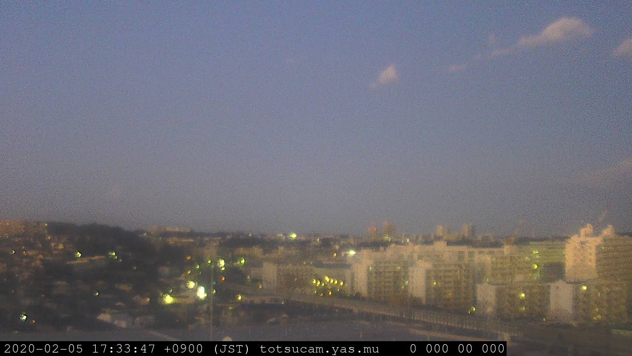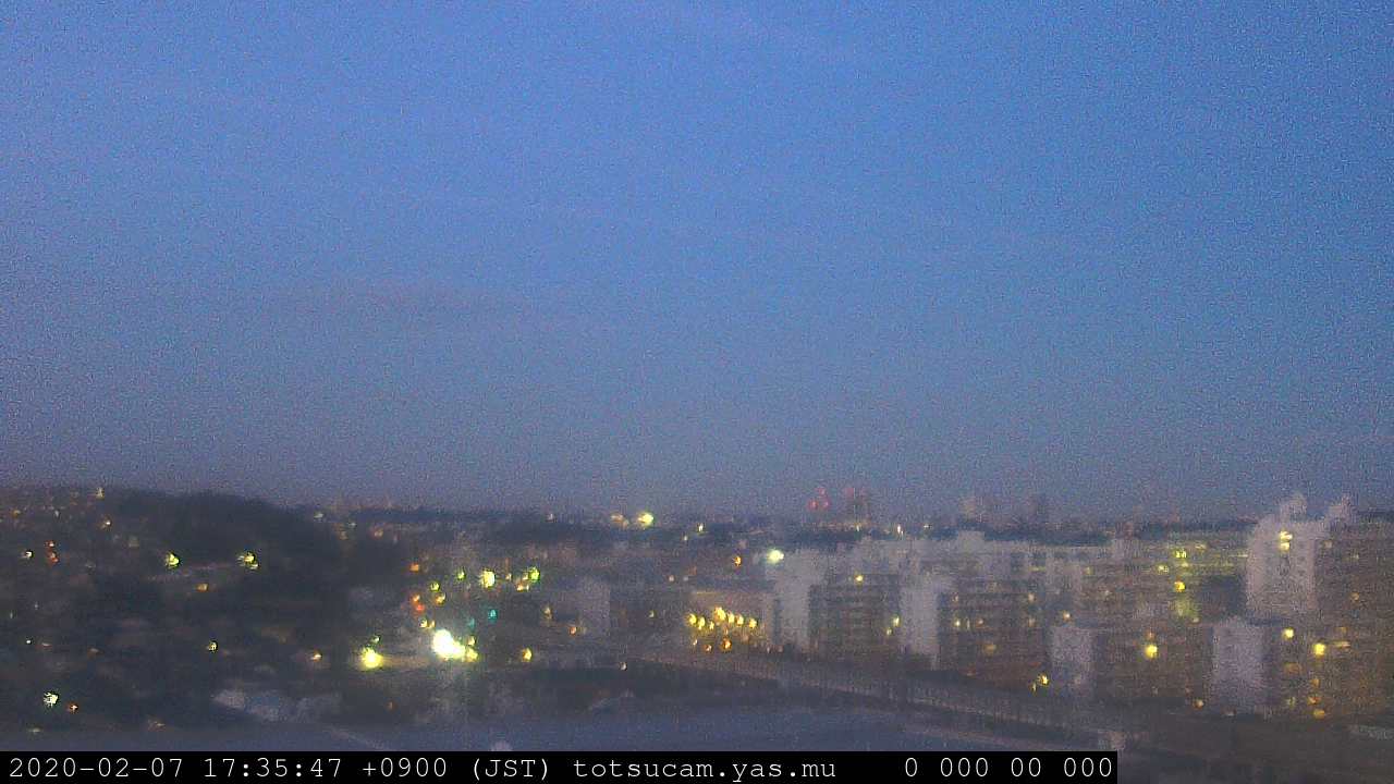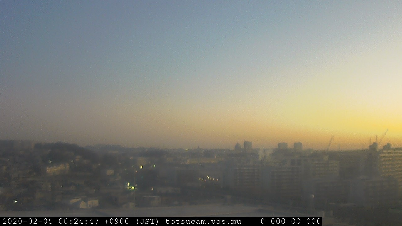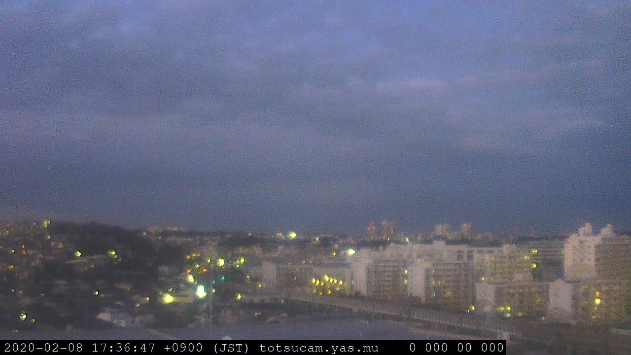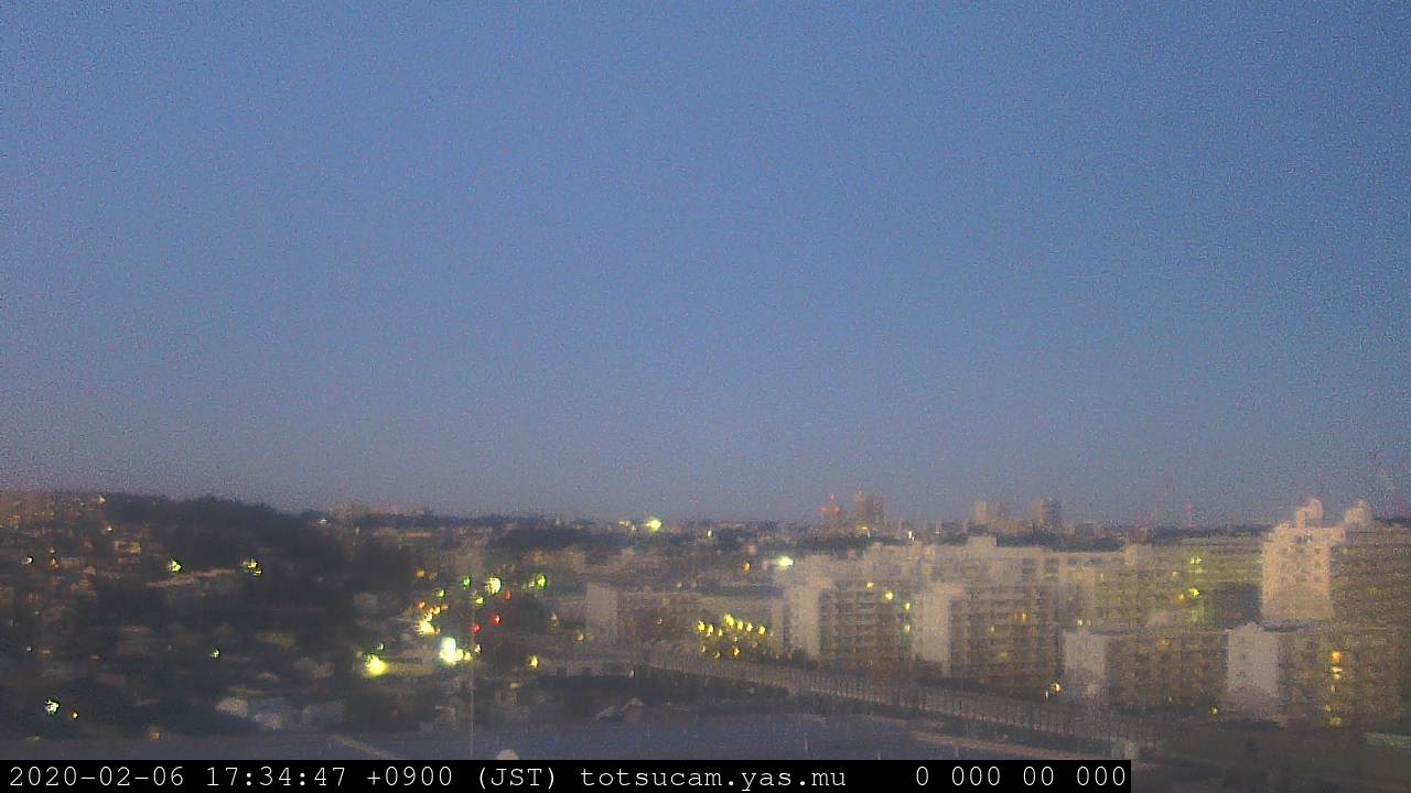 横浜市戸塚駅周辺から 東戸塚方面(北北東)を望む展望カメラの映像です。 左は現在の映像です。 下に並んでいるのは、 7日間に亘る日の出どき、昼間、夕暮れどきの写真(サムネイル)です。 それぞれ、日の出15分前、南中時、日没20分後の写真となっています。 各写真の下にはmpeg形式の動画へのリンクがあります。 それぞれ、日の出、南中、日没の前後1時間の画像です。 右欄にはその日24時間の動画へのリンクがあります。 この7日間以外は日付が一覧表示されています。 日付部分をクリックすると、 その日付から7日分が展開されて表示されます。