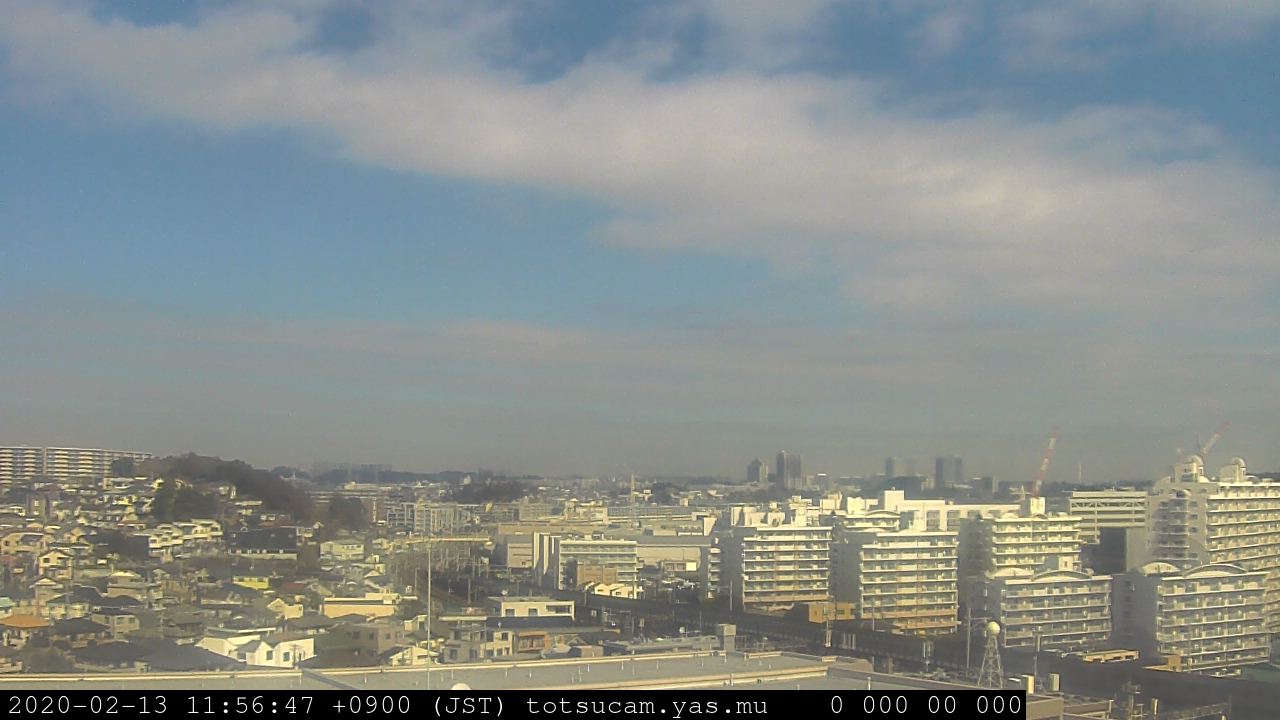 適度に曇った日の雲の動き (例: 2005-10-24) がとても楽しめます。 正面を横切っている高架は横須賀線下りです。 その下に横須賀線上り、東海道線、同貨物線が走っていますが、 高架に隠れていてよく見えません。 夜間は特に中央左寄りの車の動きがよく見えます。