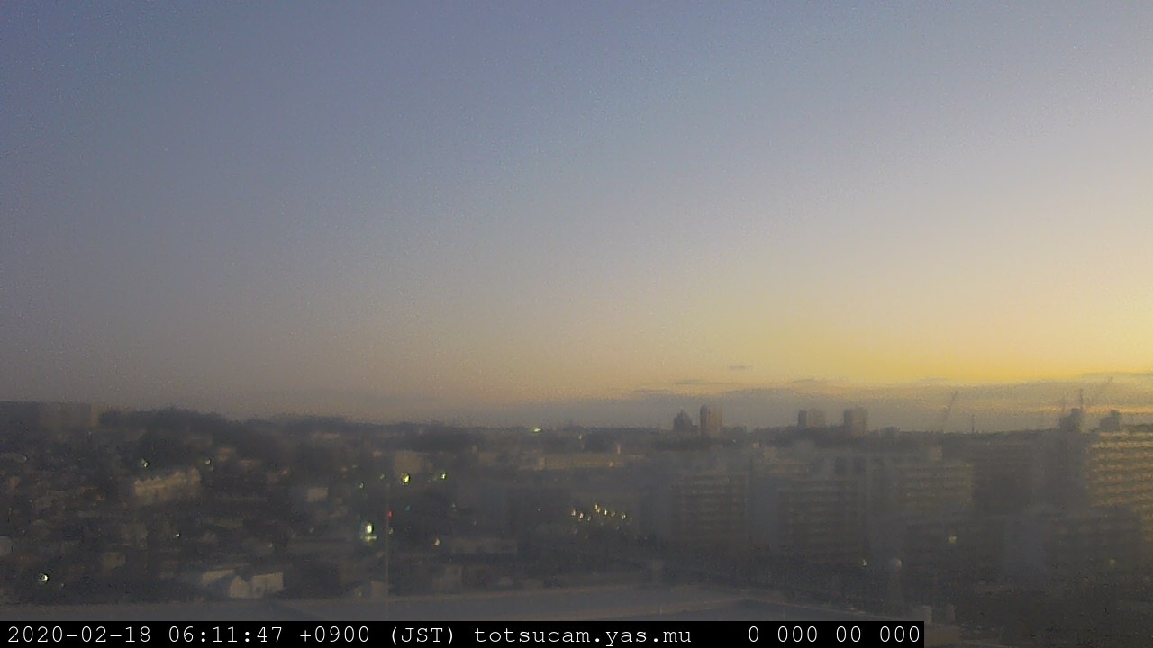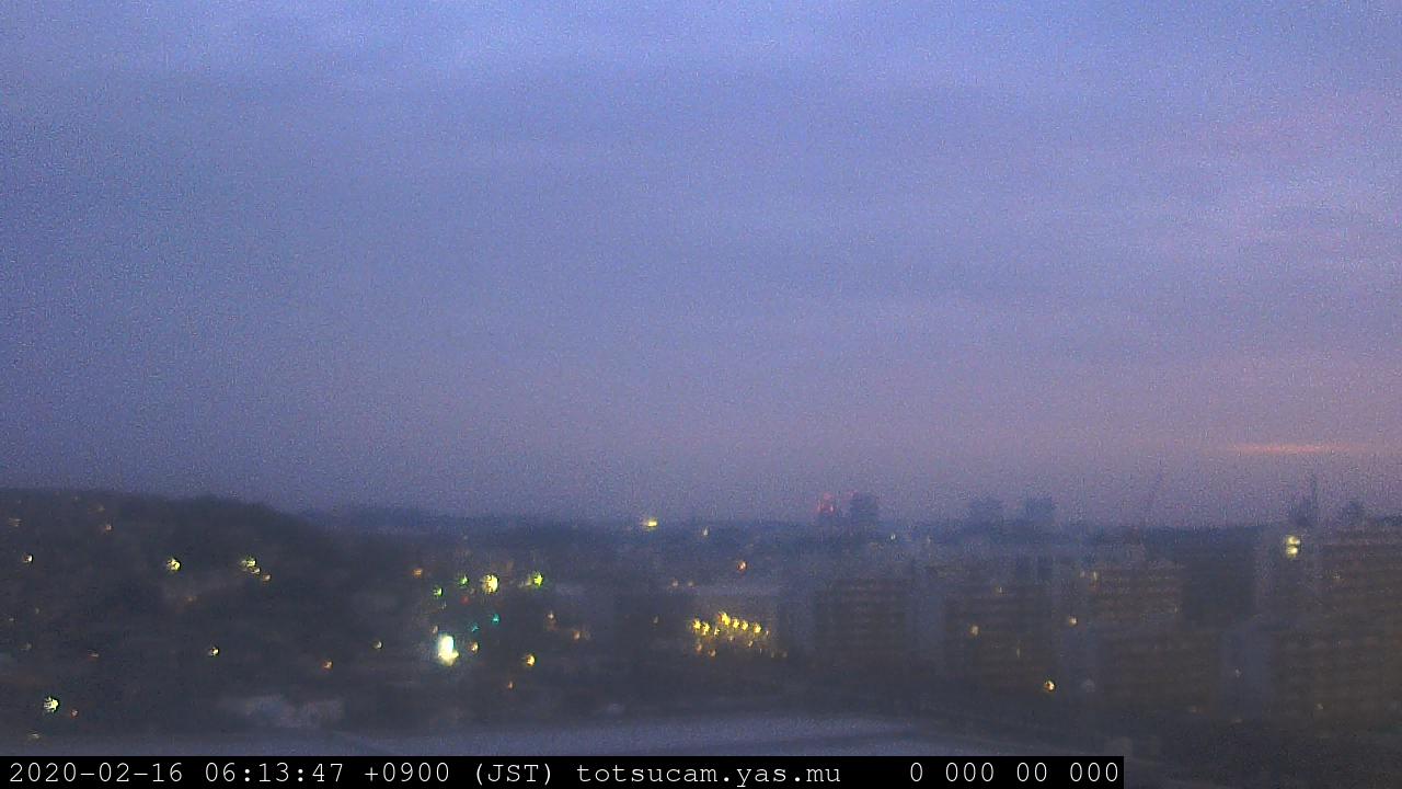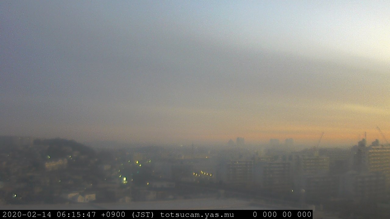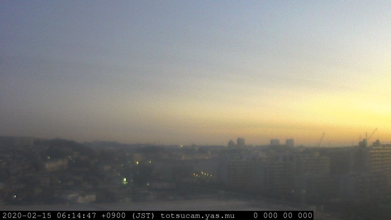 横浜市戸塚駅周辺から 東戸塚方面(北北東)を望む展望カメラの映像です。 左は現在の映像です。 下に並んでいるのは、 7日間に亘る日の出どき、昼間、夕暮れどきの写真(サムネイル)です。 それぞれ、日の出15分前、南中時、日没20分後の写真となっています。 各写真の下にはmpeg形式の動画へのリンクがあります。 それぞれ、日の出、南中、日没の前後1時間の画像です。 右欄にはその日24時間の動画へのリンクがあります。 この7日間以外は日付が一覧表示されています。 日付部分をクリックすると、 その日付から7日分が展開されて表示されます。