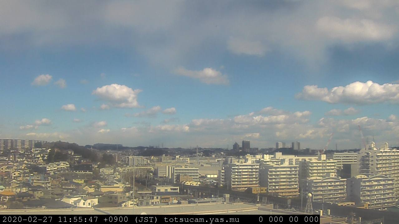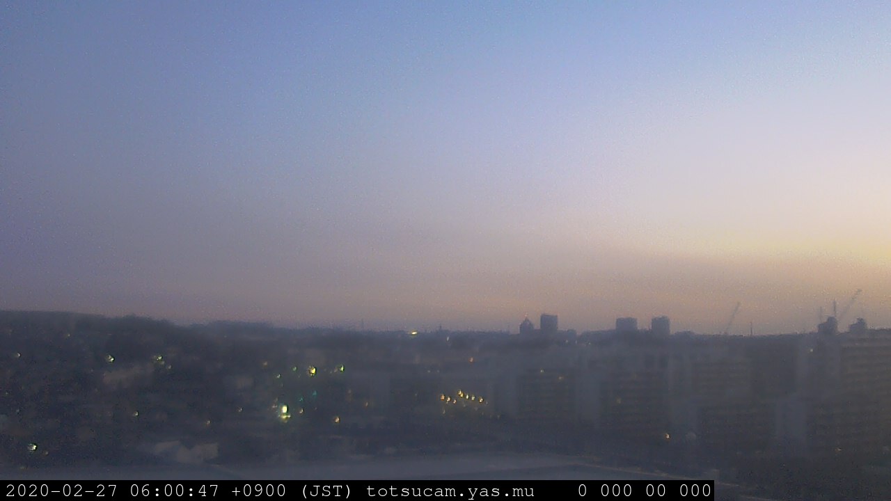 横浜市戸塚駅周辺から 東戸塚方面(北北東)を望む展望カメラの映像です。 左は現在の映像です。 下に並んでいるのは、 7日間に亘る日の出どき、昼間、夕暮れどきの写真(サムネイル)です。 それぞれ、日の出15分前、南中時、日没20分後の写真となっています。 各写真の下にはmpeg形式の動画へのリンクがあります。 それぞれ、日の出、南中、日没の前後1時間の画像です。 右欄にはその日24時間の動画へのリンクがあります。 この7日間以外は日付が一覧表示されています。 日付部分をクリックすると、 その日付から7日分が展開されて表示されます。
