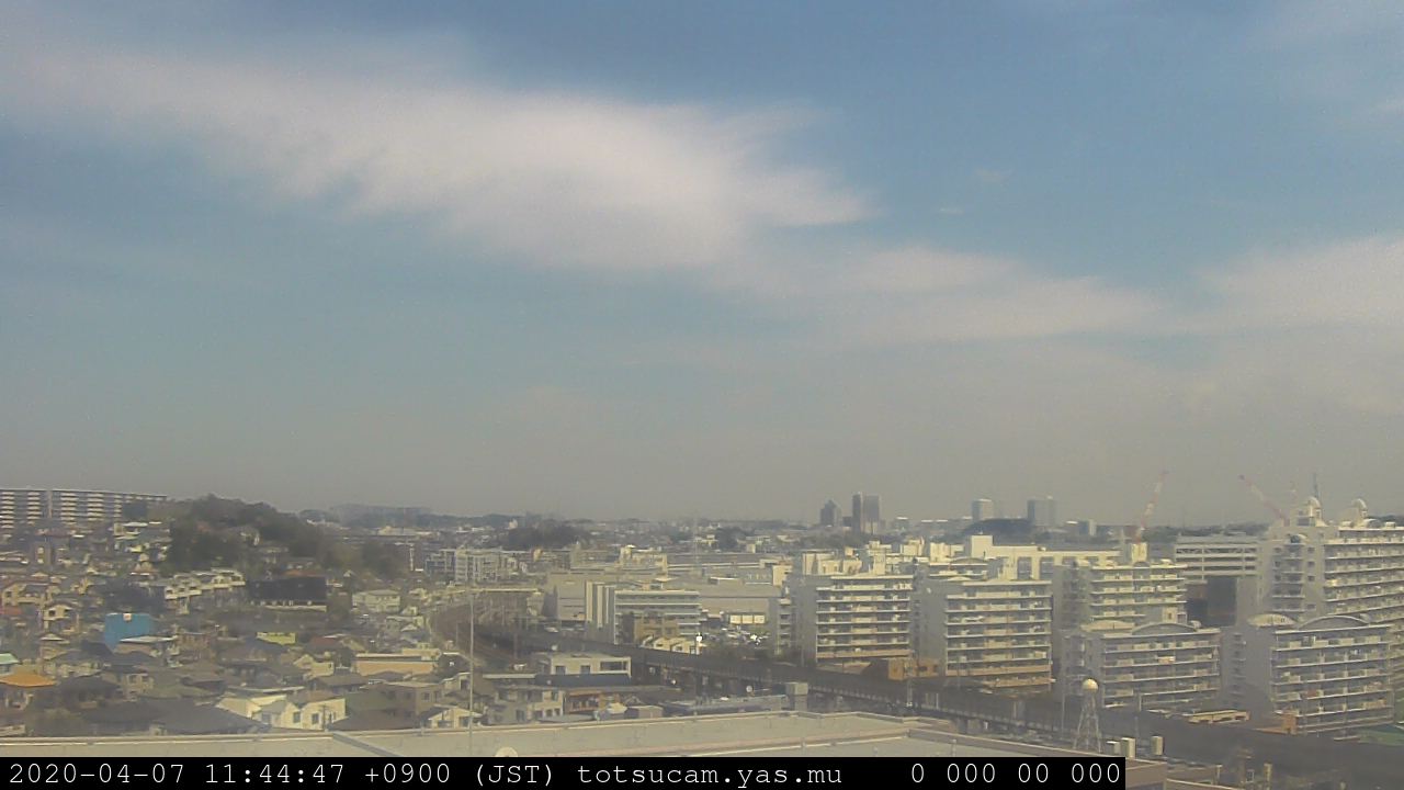適度に曇った日の雲の動き (例: 2005-10-24) がとても楽しめます。 正面を横切っている高架は横須賀線下りです。 その下に横須賀線上り、東海道線、同貨物線が走っていますが、 高架に隠れていてよく見えません。 夜間は特に中央左寄りの車の動きがよく見えます。