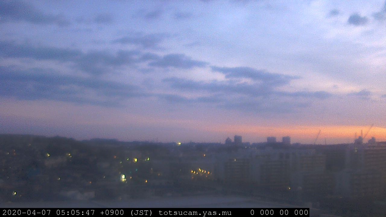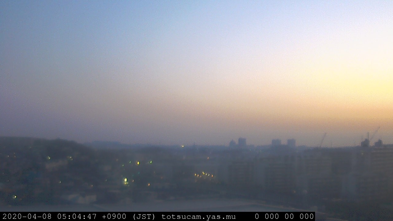 横浜市戸塚駅周辺から 東戸塚方面(北北東)を望む展望カメラの映像です。 左は現在の映像です。 下に並んでいるのは、 7日間に亘る日の出どき、昼間、夕暮れどきの写真(サムネイル)です。 それぞれ、日の出15分前、南中時、日没20分後の写真となっています。 各写真の下にはmpeg形式の動画へのリンクがあります。 それぞれ、日の出、南中、日没の前後1時間の画像です。 右欄にはその日24時間の動画へのリンクがあります。 この7日間以外は日付が一覧表示されています。 日付部分をクリックすると、 その日付から7日分が展開されて表示されます。