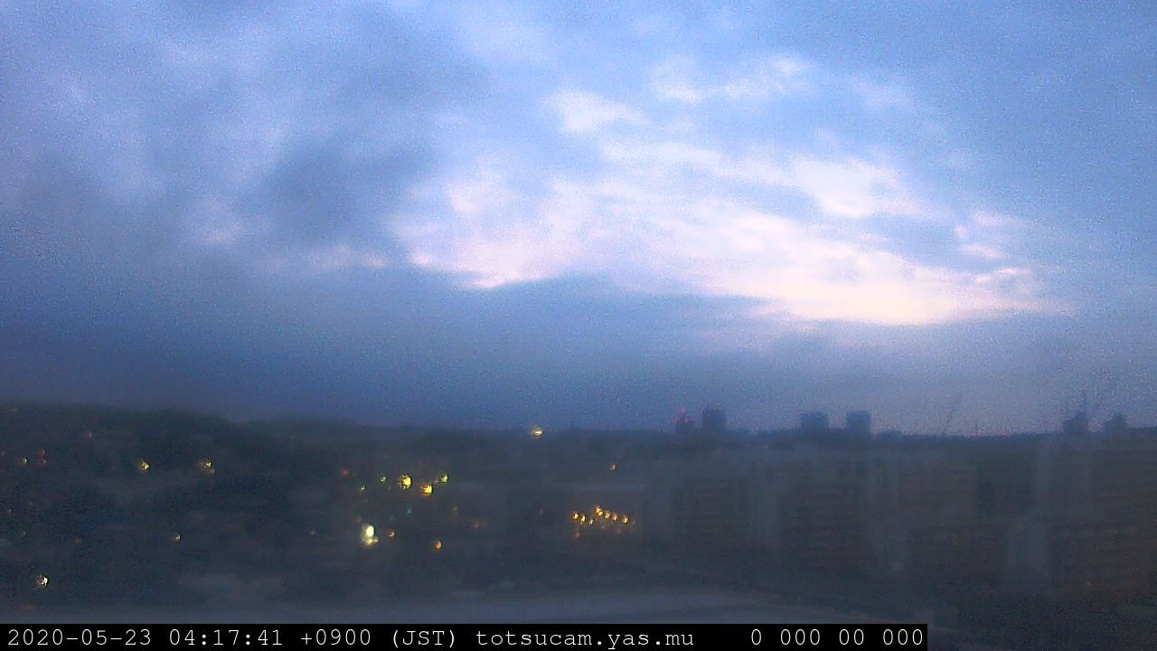 横浜市戸塚駅周辺から 東戸塚方面(北北東)を望む展望カメラの映像です。 左は現在の映像です。 下に並んでいるのは、 7日間に亘る日の出どき、昼間、夕暮れどきの写真(サムネイル)です。 それぞれ、日の出15分前、南中時、日没20分後の写真となっています。 各写真の下にはmpeg形式の動画へのリンクがあります。 それぞれ、日の出、南中、日没の前後1時間の画像です。 右欄にはその日24時間の動画へのリンクがあります。 この7日間以外は日付が一覧表示されています。 日付部分をクリックすると、 その日付から7日分が展開されて表示されます。
