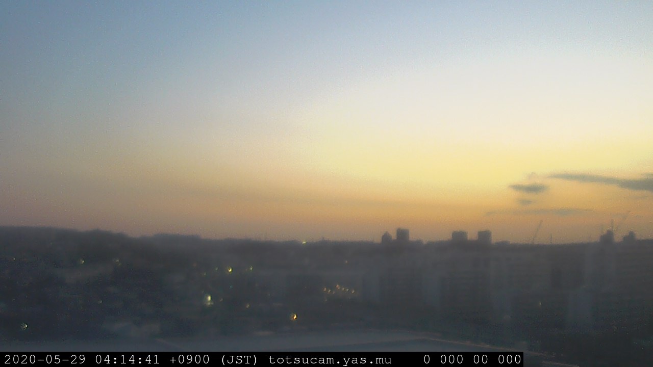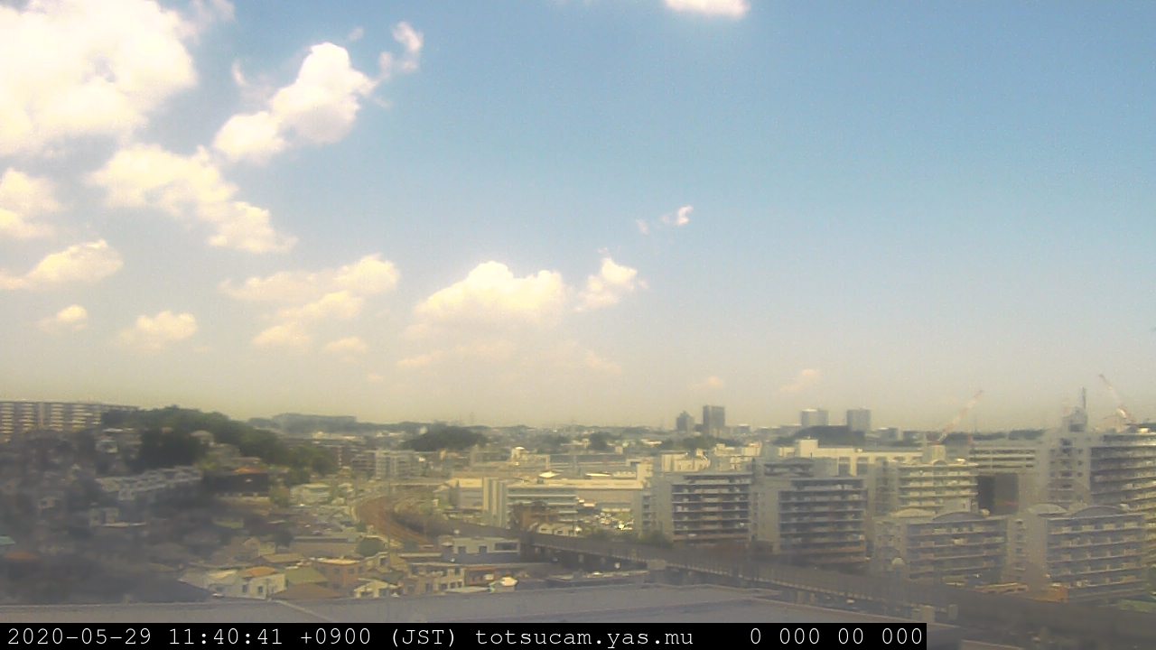 横浜市戸塚駅周辺から 東戸塚方面(北北東)を望む展望カメラの映像です。 左は現在の映像です。 下に並んでいるのは、 7日間に亘る日の出どき、昼間、夕暮れどきの写真(サムネイル)です。 それぞれ、日の出15分前、南中時、日没20分後の写真となっています。 各写真の下にはmpeg形式の動画へのリンクがあります。 それぞれ、日の出、南中、日没の前後1時間の画像です。 右欄にはその日24時間の動画へのリンクがあります。 この7日間以外は日付が一覧表示されています。 日付部分をクリックすると、 その日付から7日分が展開されて表示されます。
